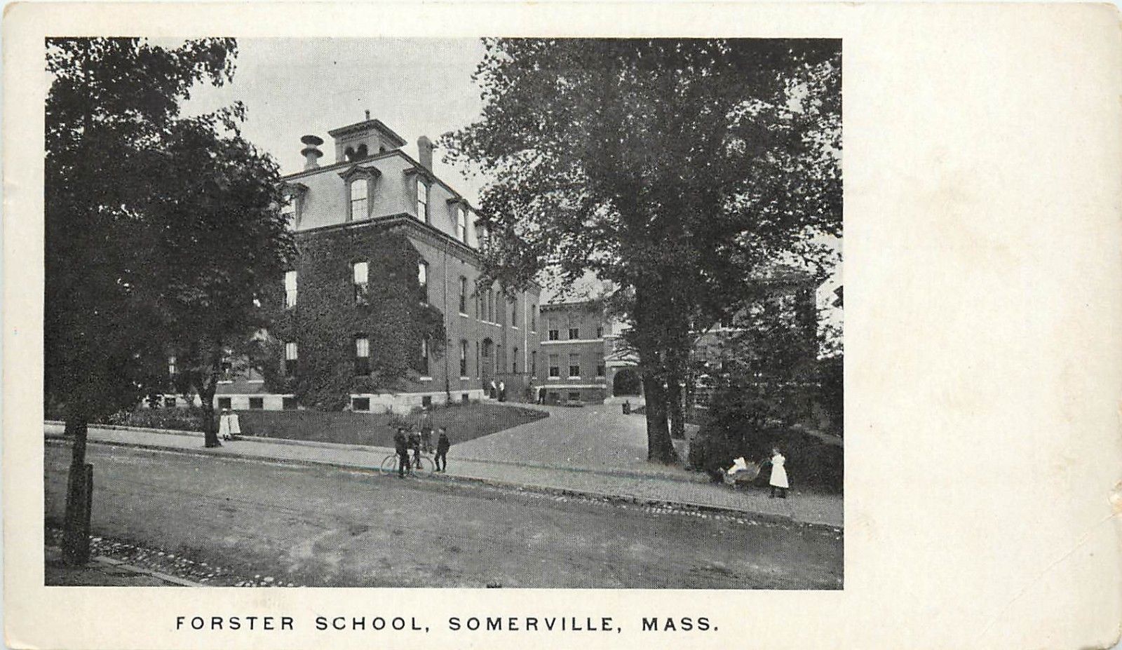 c1906 Postcard; Kids outside Forster School, Somerville MA Middlesex County