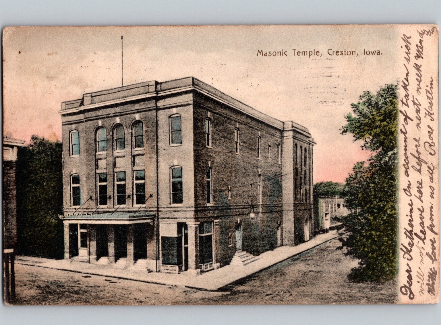 c1907 Masonic Temple CRESTON Iowa IA Union County Postcard
