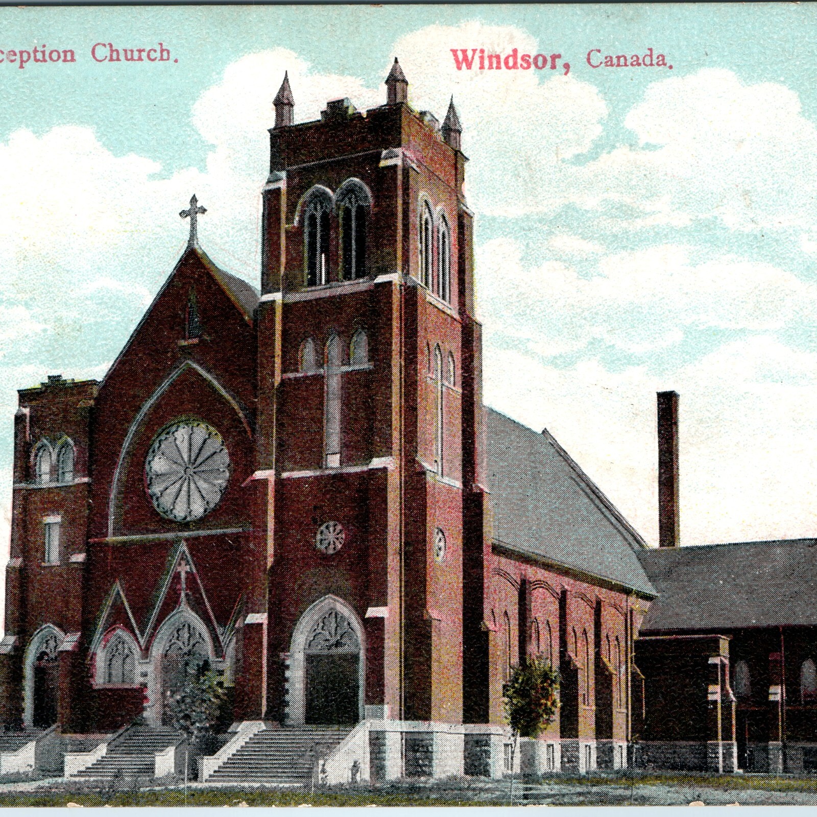 Condition: Unposted. See scans for details... May contain flaws not visible in scans. For sale is a vintage c1907 postcard of the Immaculate Conception Church in Windsor, Ontario, Canada. This color lithograph dep ... Read More