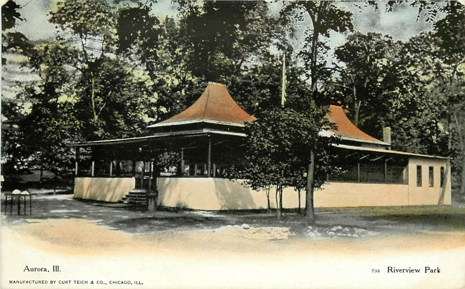 c1908 Postcard; Pavilion at Riverview Park, Aurora IL DuPage County Posted