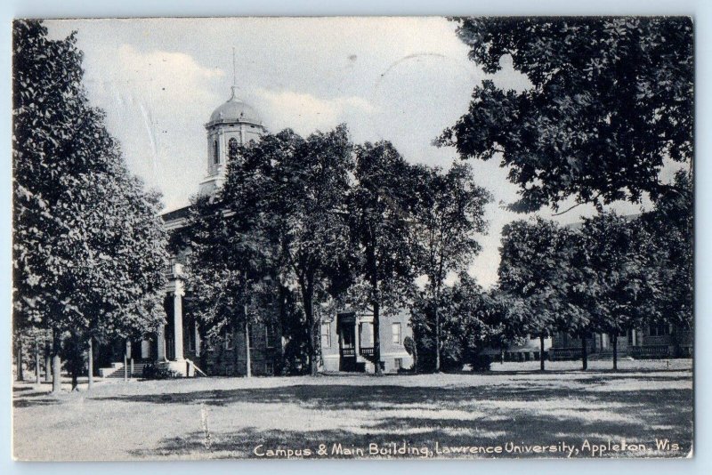 c1909 Appleton Wisconsin WI Postcard Campus Main Building Lawrence University