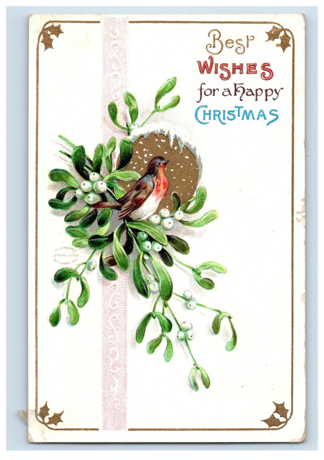 C.1910 Bird Snow Drops Ribbon Christmas Postcard F122E