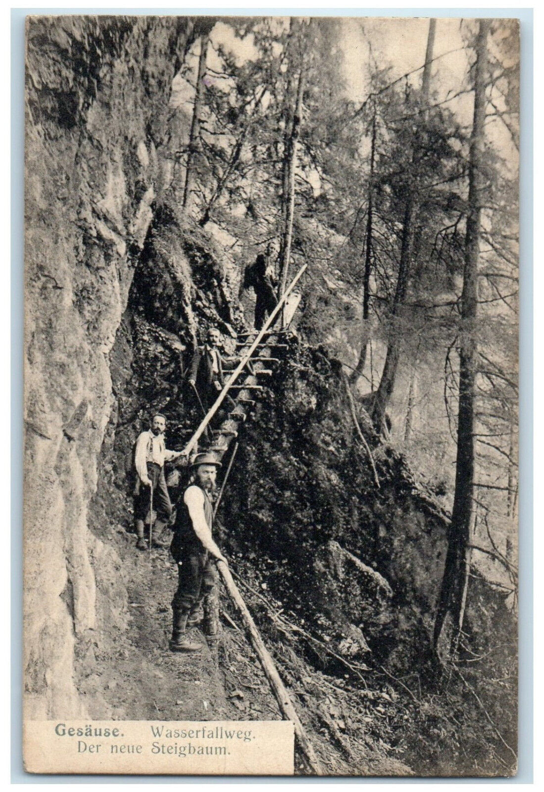 c1910 Gesause Waterfall Path The New Climbing Tree Austria Antique Postcard