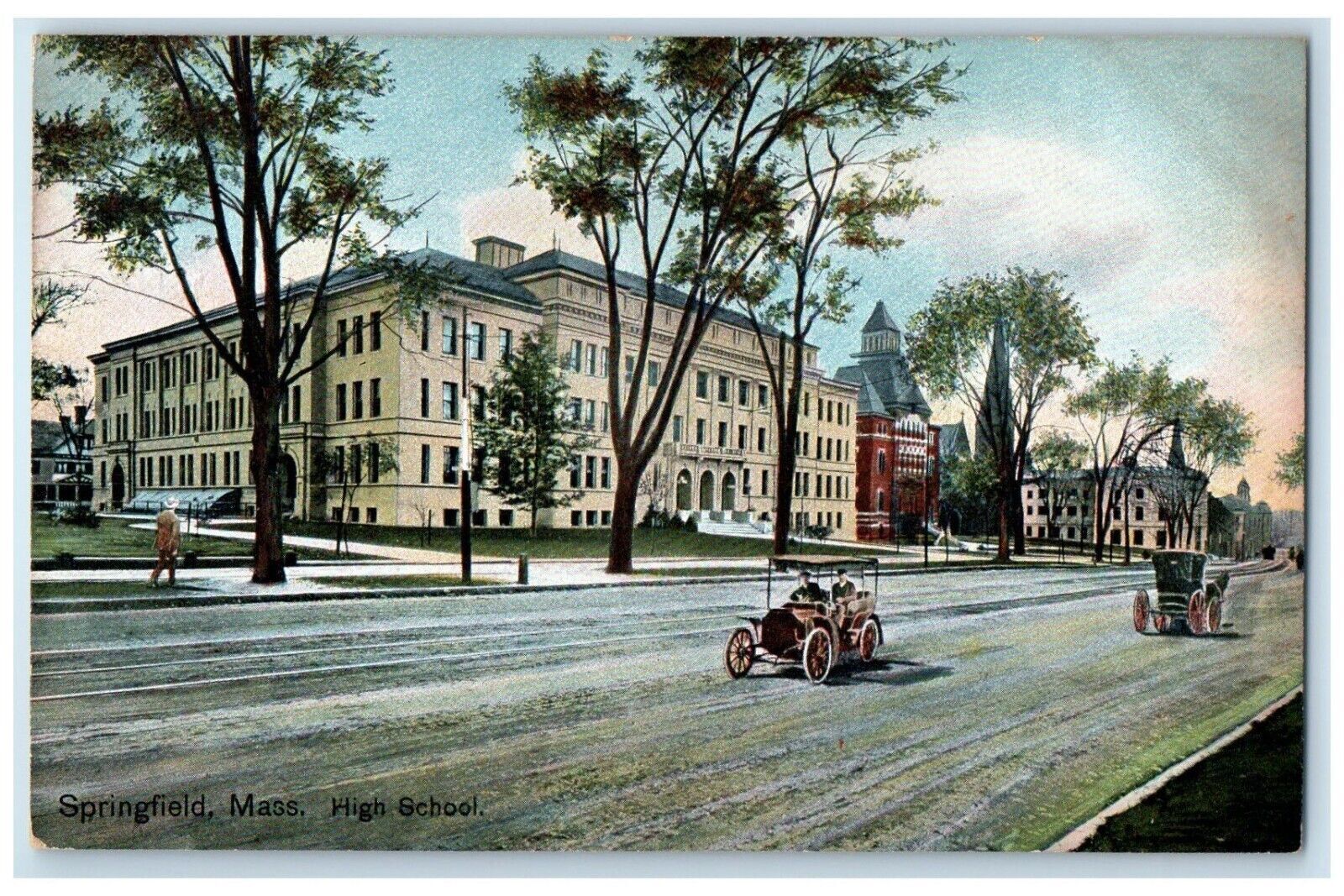 c1910 High School Exterior Building Springfield Massachusetts Vintage Postcard