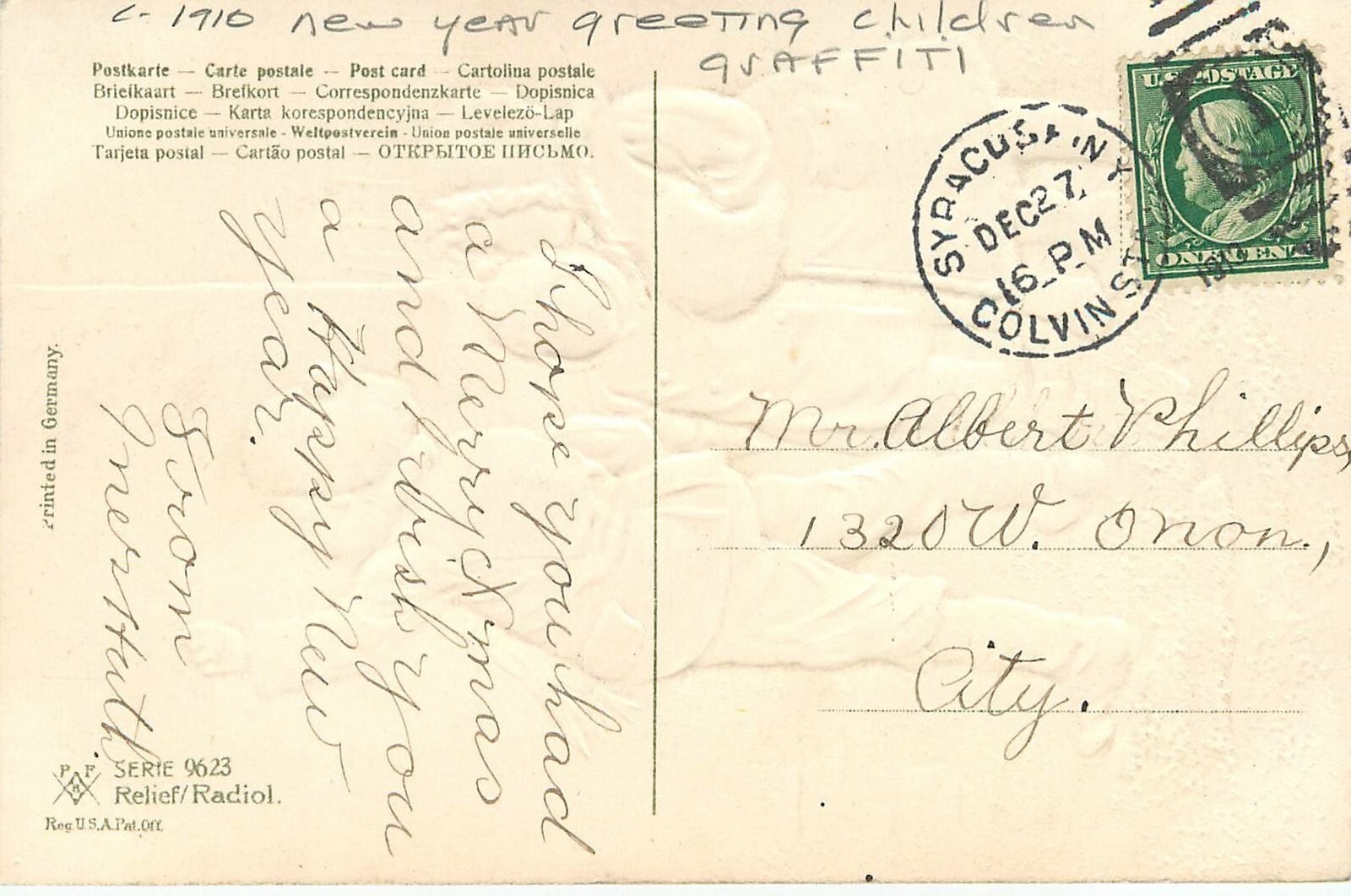 c1910 New Year Greeting children Graffiti #9623 Postcard 25-11468