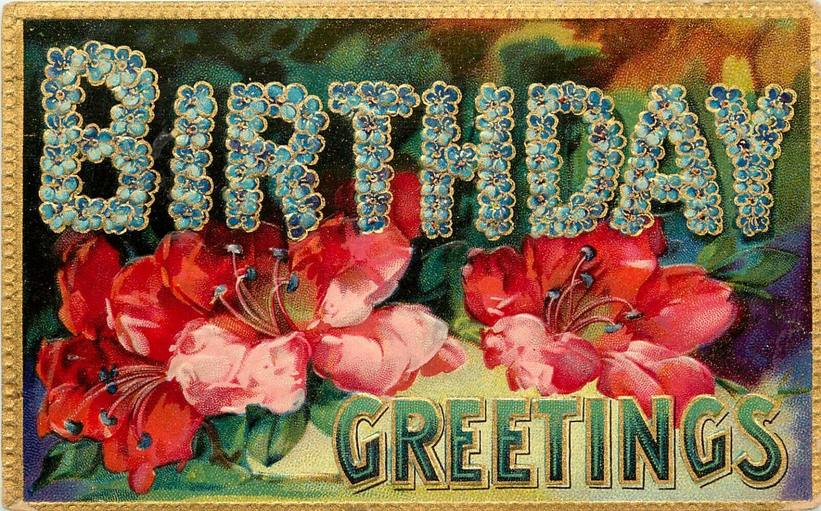 c1910 Postcard 1440 Birthday Greetings Glossy Embossed Brightly Colored Azalea