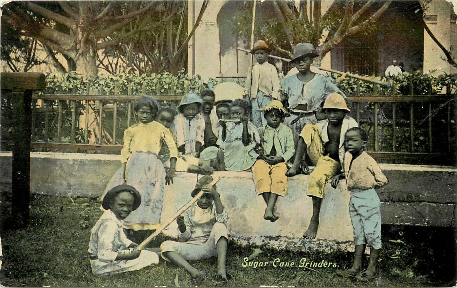 c1910 Postcard; Sugar Cane Grinders, Barefoot African American Children Group