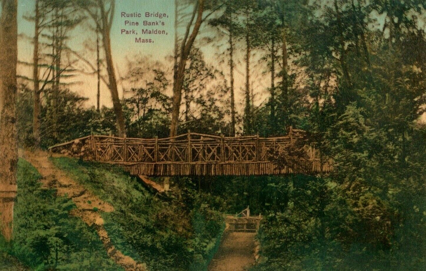 C.1910 Rustic Bridge, Pine Bank's Park, Malden, Mass. Hand Tinted Postcard P175
