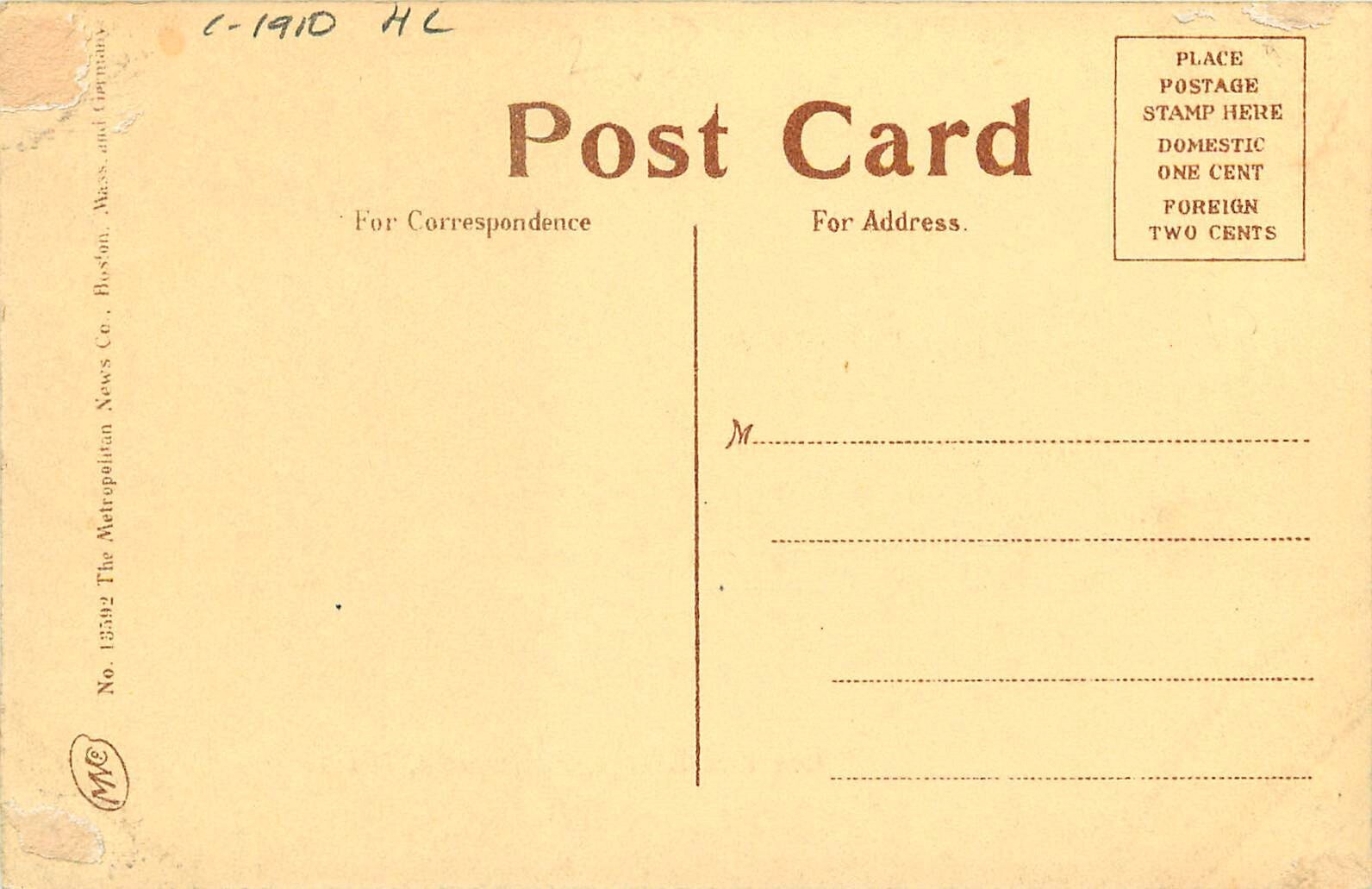A Vintage hand colored postcard as described in title, additional info is below--Surface damage and stains Publisher-photographer--Artist---Metropolitan news card