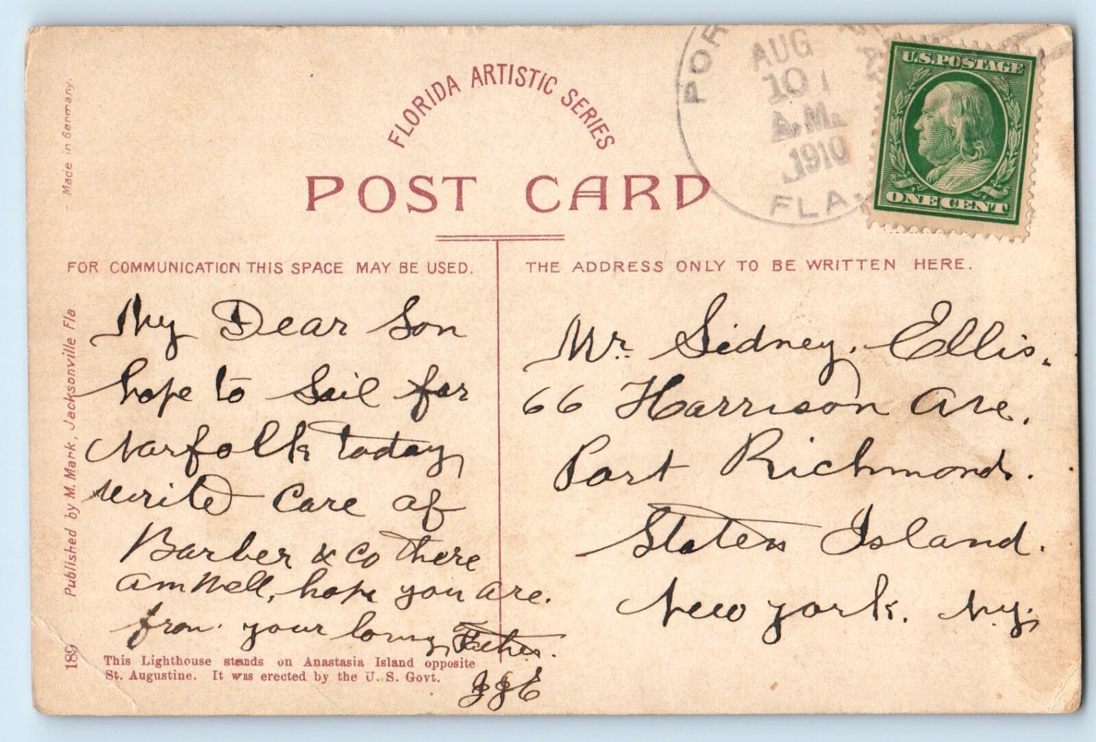 c1910 St. Augustine Florida FL Vintage Postcard Lighthouse High Tower Posted