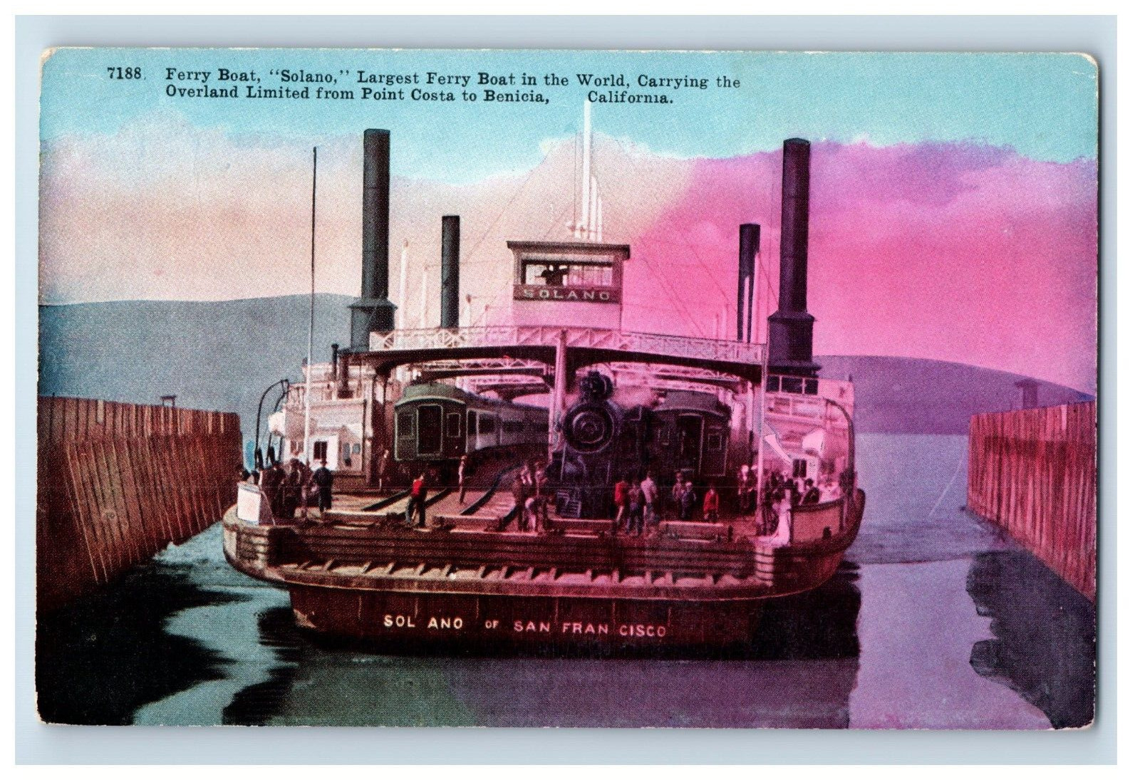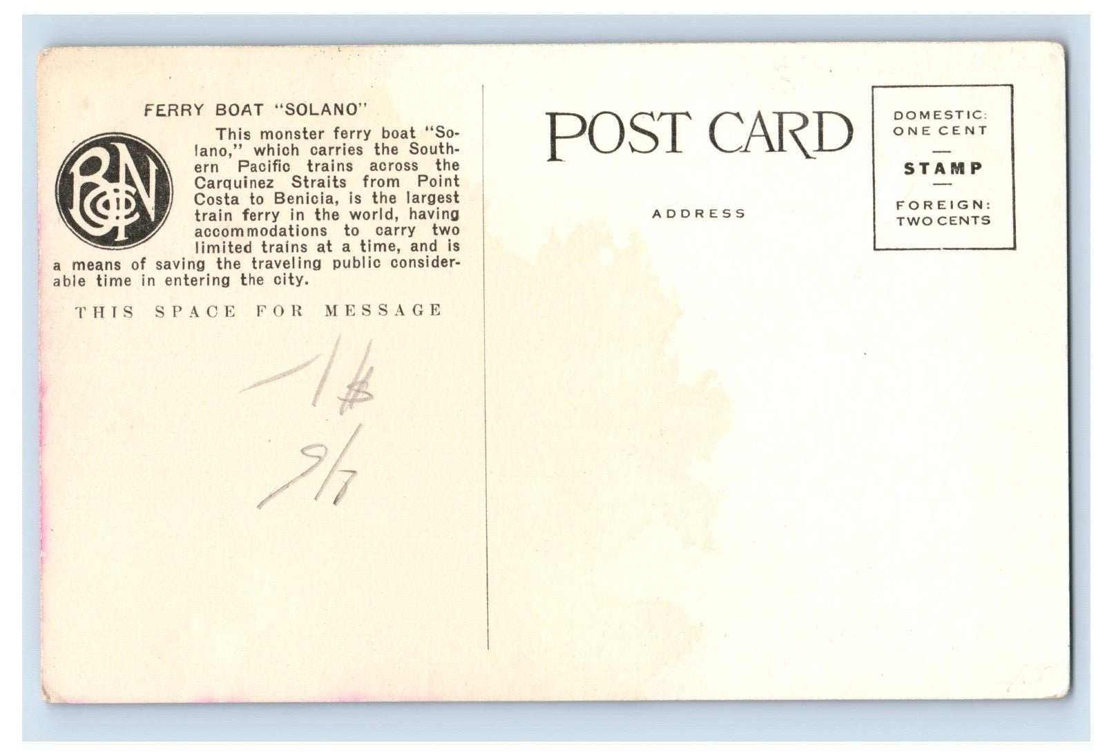C.1910 Train Ferry Solano Southern Pacific Benicia, CA Postcard F165