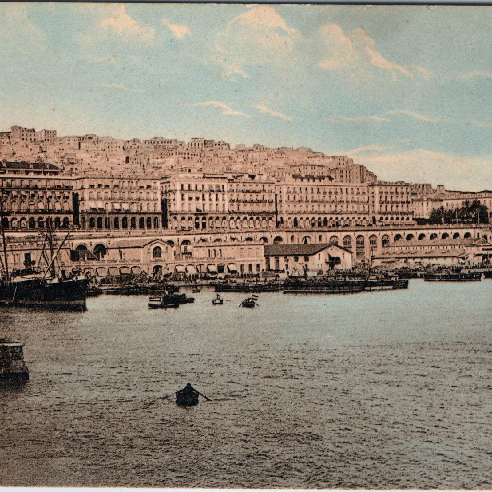 c1910s Algiers Algeria Harbor Postcard Norddeutscher Lloyd Bremen Ship Arches
