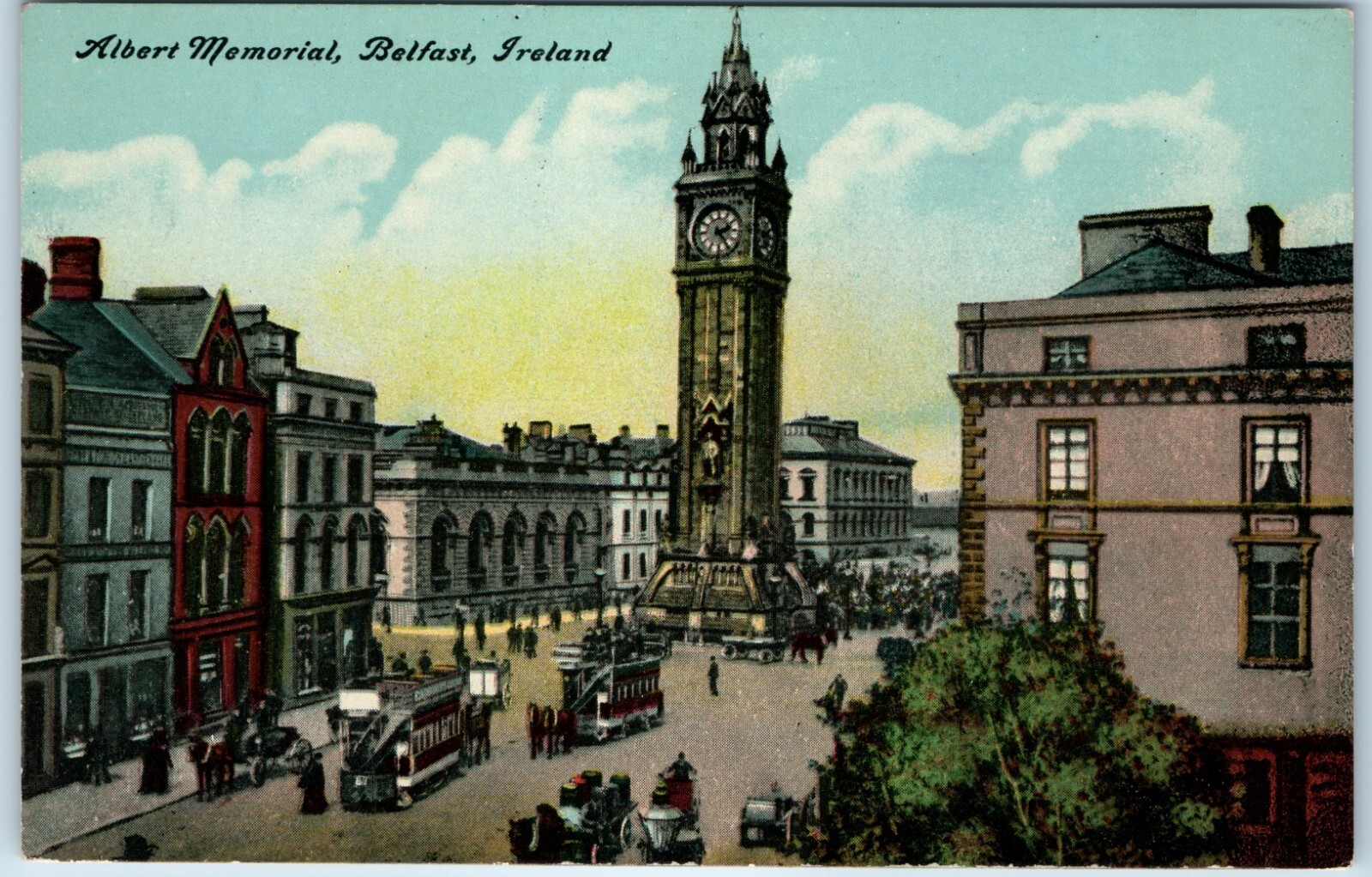 Condition: Unposted. See scans for details... May contain flaws not visible in scans. For sale is a vintage c1910s color lithograph postcard of the Albert Memorial Clock Tower in Belfast, Ireland. The scene captur ... Read More