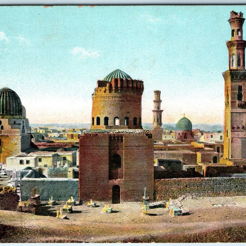 c1910s Cairo, Egypt Ancient Ruin Mosque Minarets Domes Islamic Architecture A353