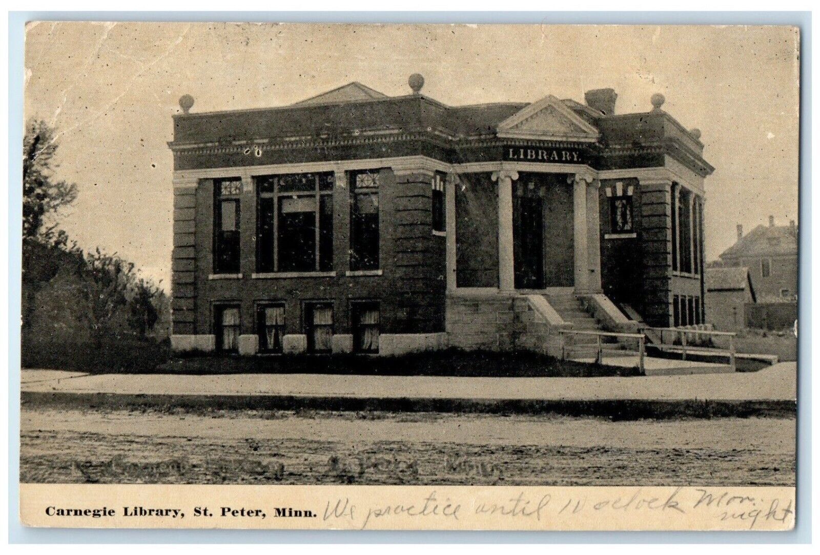 c1910's Carnegie Library Building Dirt Road St. Peter Minnesota MN Postcard
