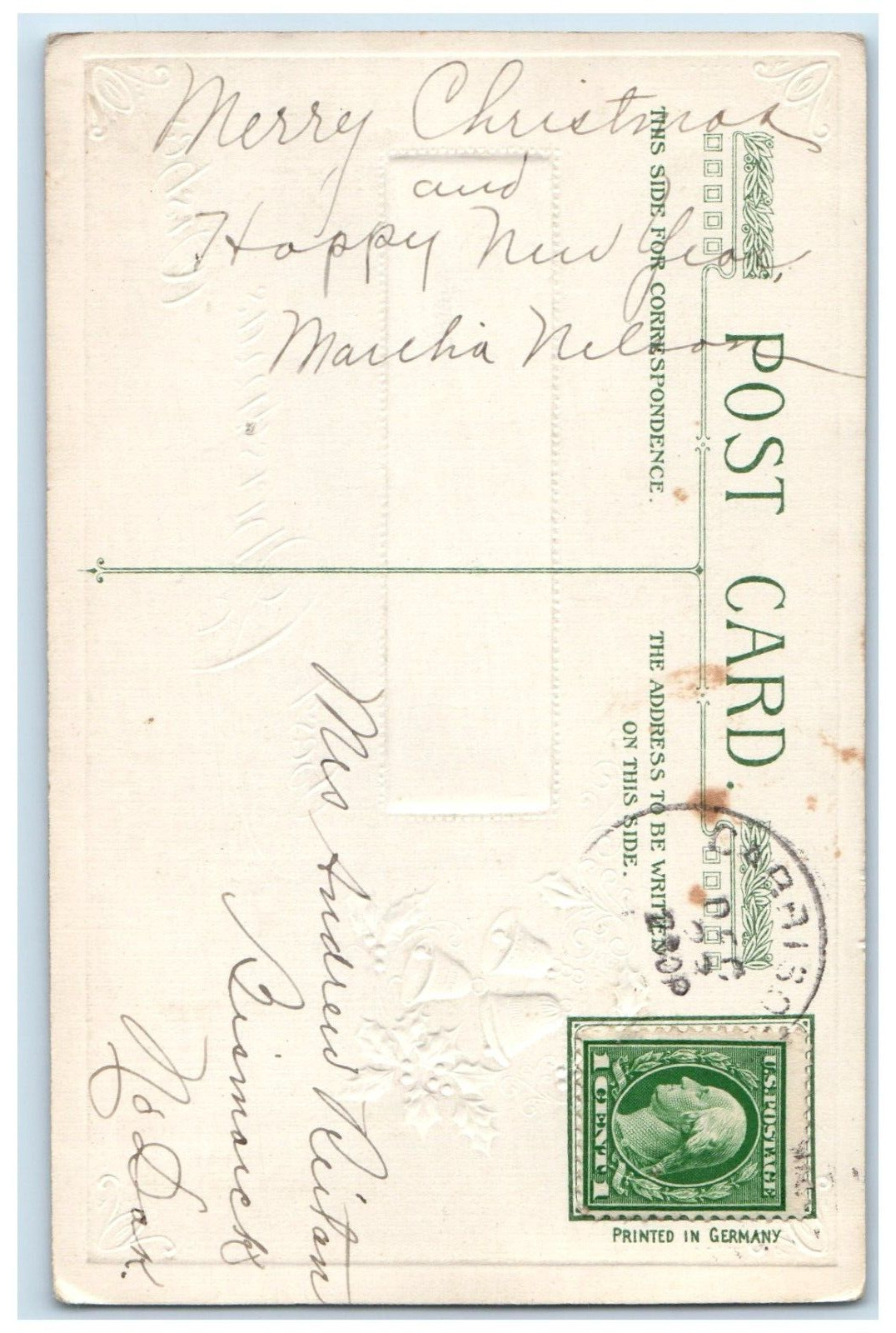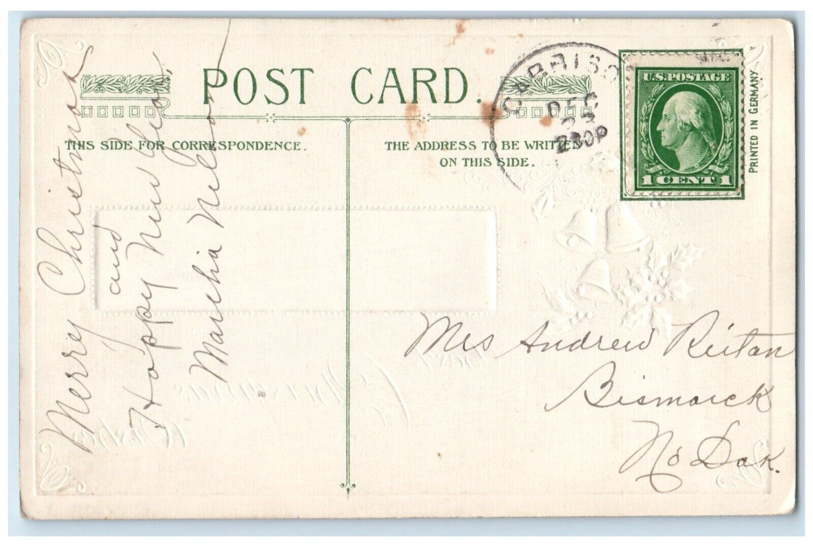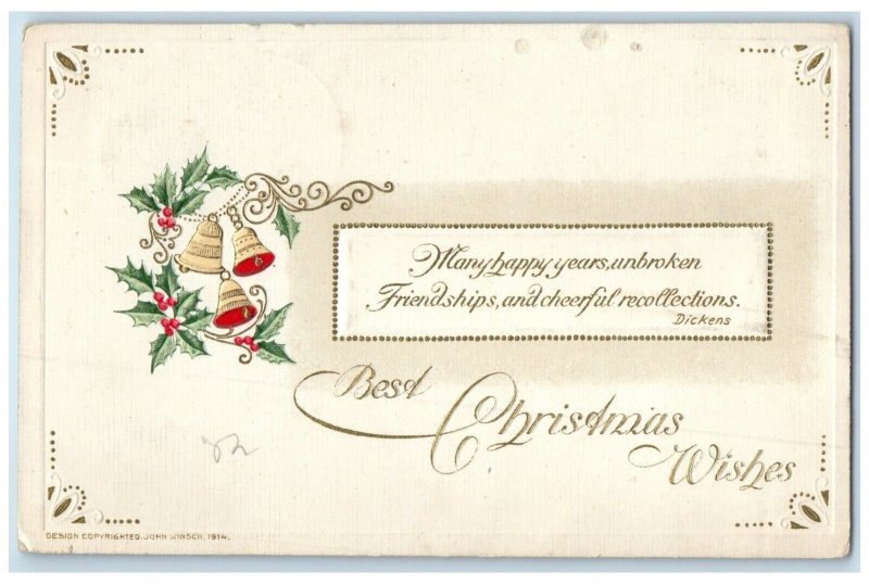 c1910's Christmas Berries Ringing Bells John Winsch Artist Signed Postcard