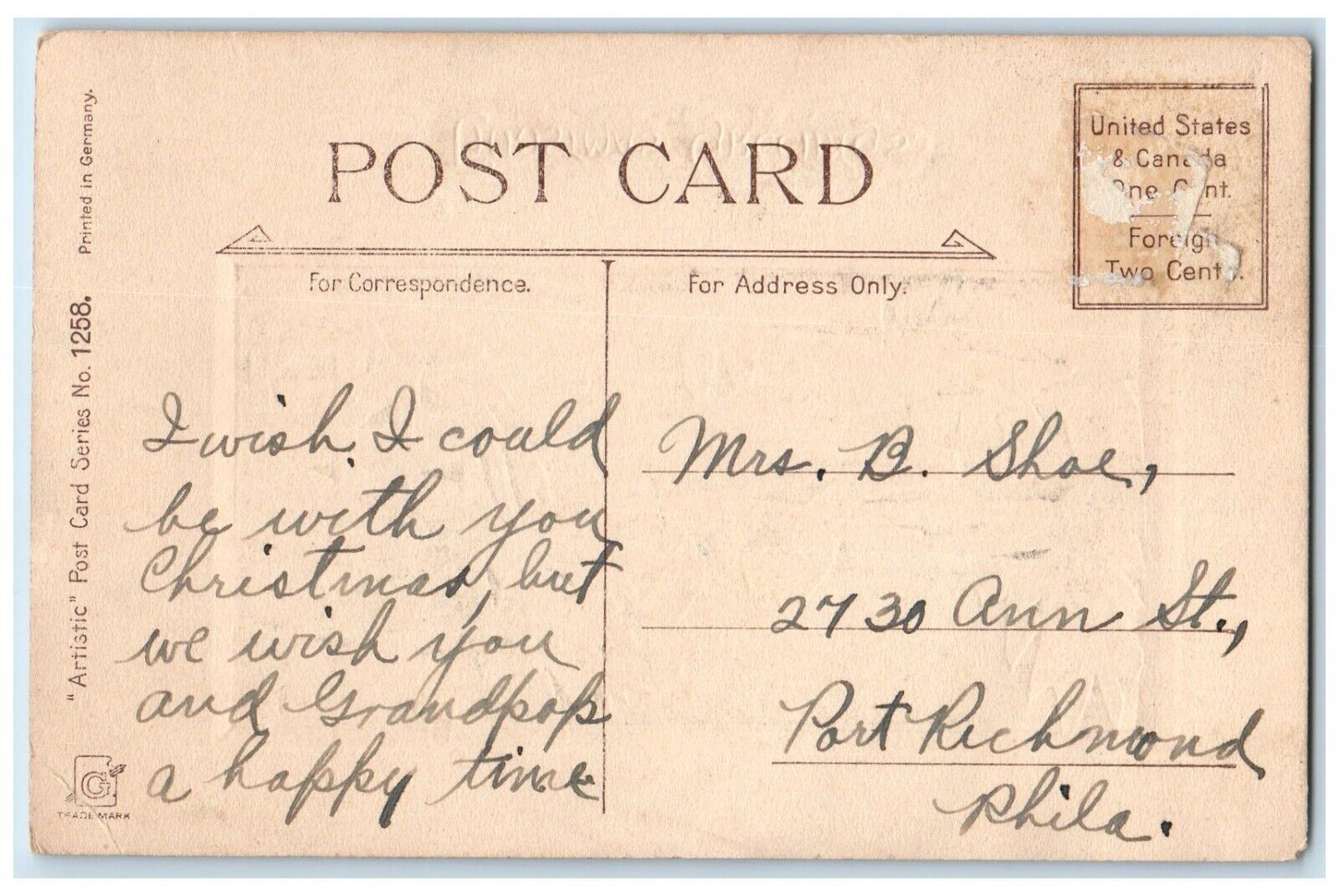 c1910's Christmas Greetings People Walking Pine Trees Moon Winter Snow Postcard