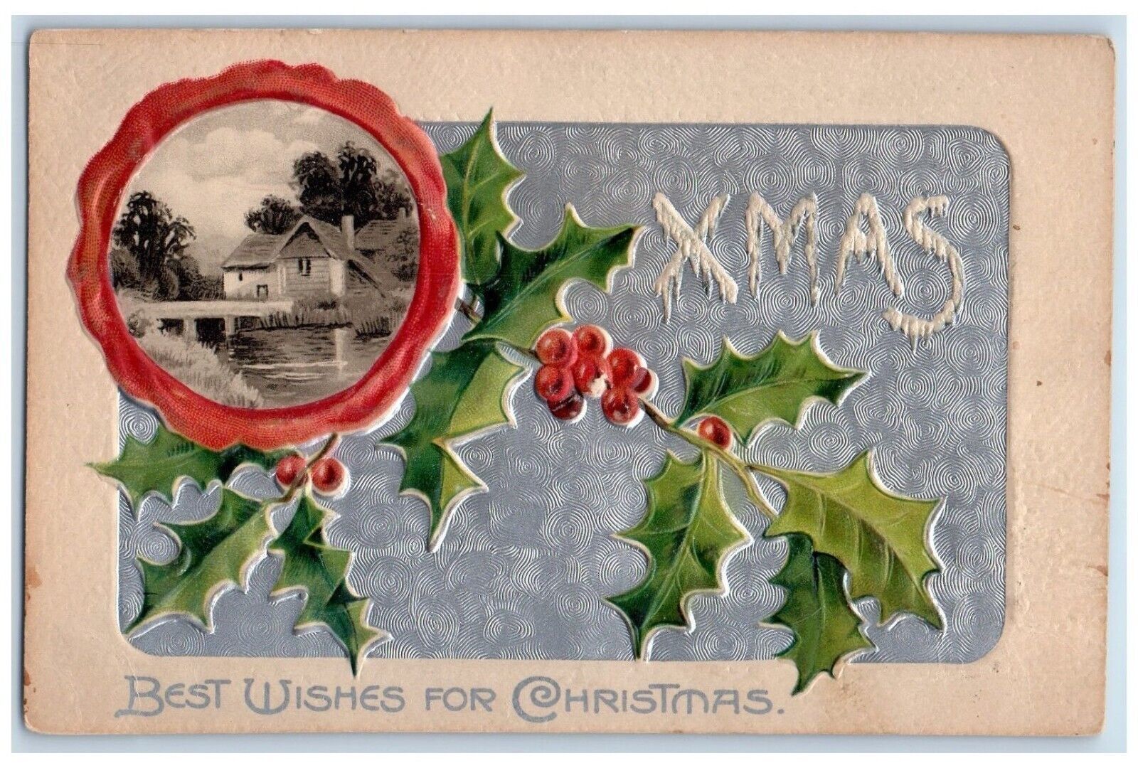 c1910's Christmas Holly Berries House River Clapsaddle Schenectady NY Postcard