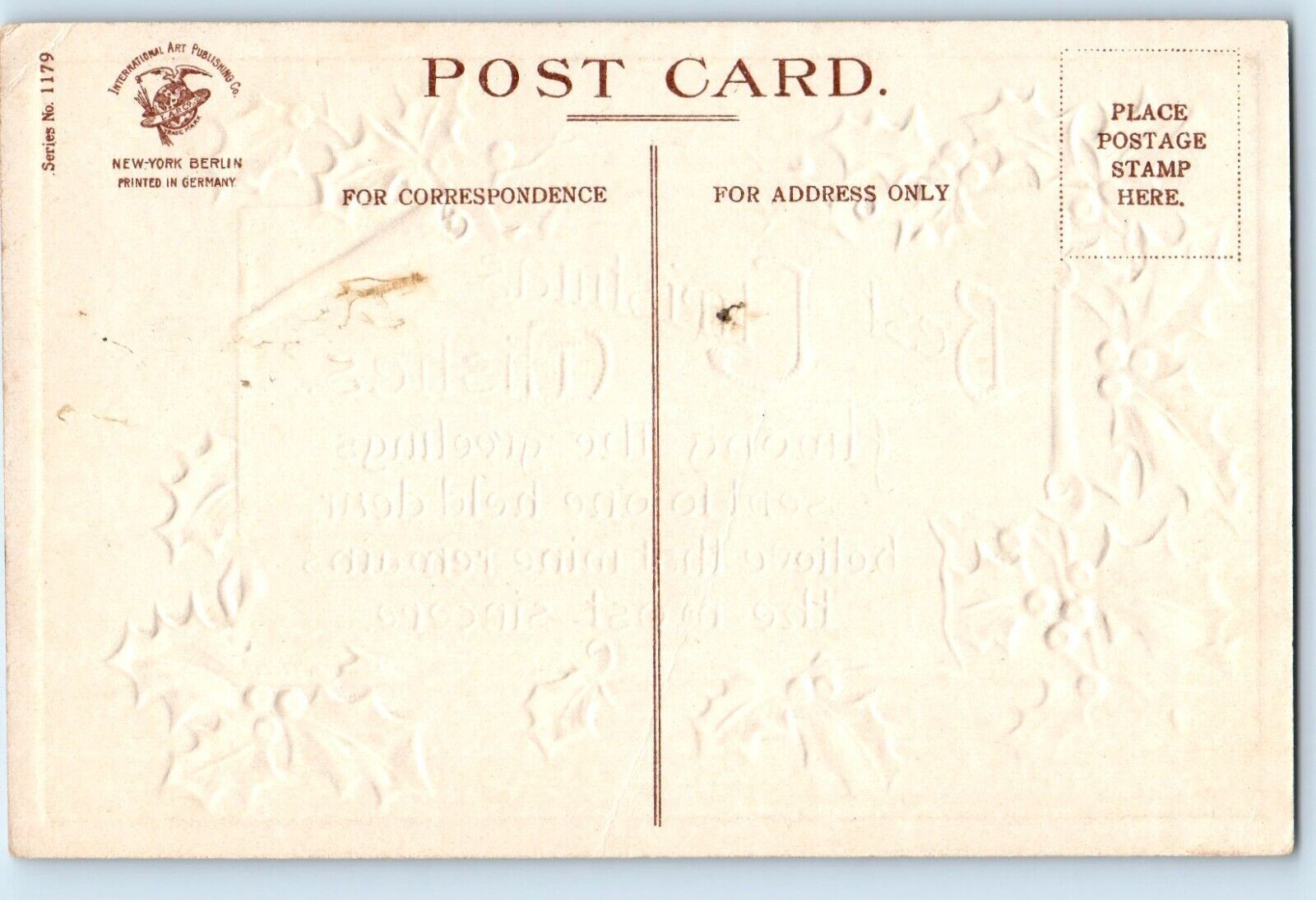 c1910's Christmas Message Holly Berries Clapsaddle Embossed Antique Postcard