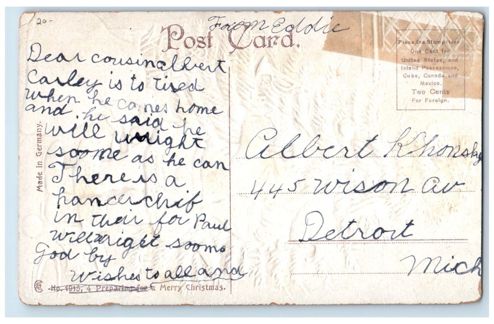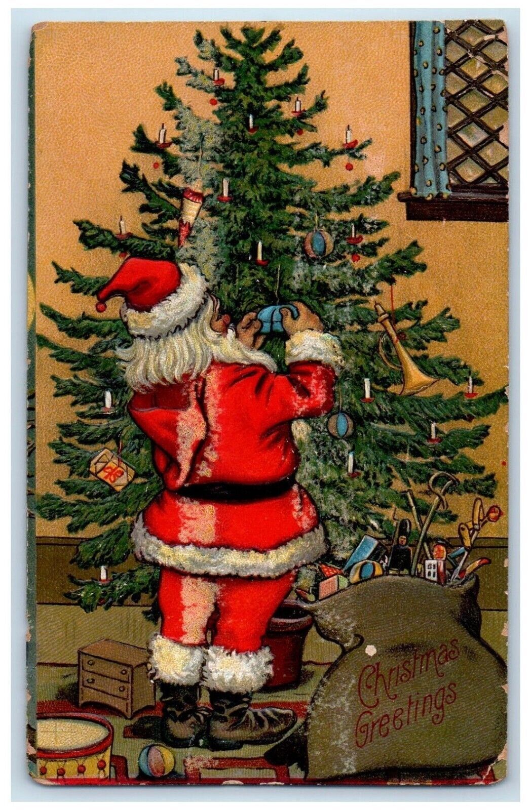 c1910's Christmas Santa Claus Decorating Christmas Tree Embossed Postcard
