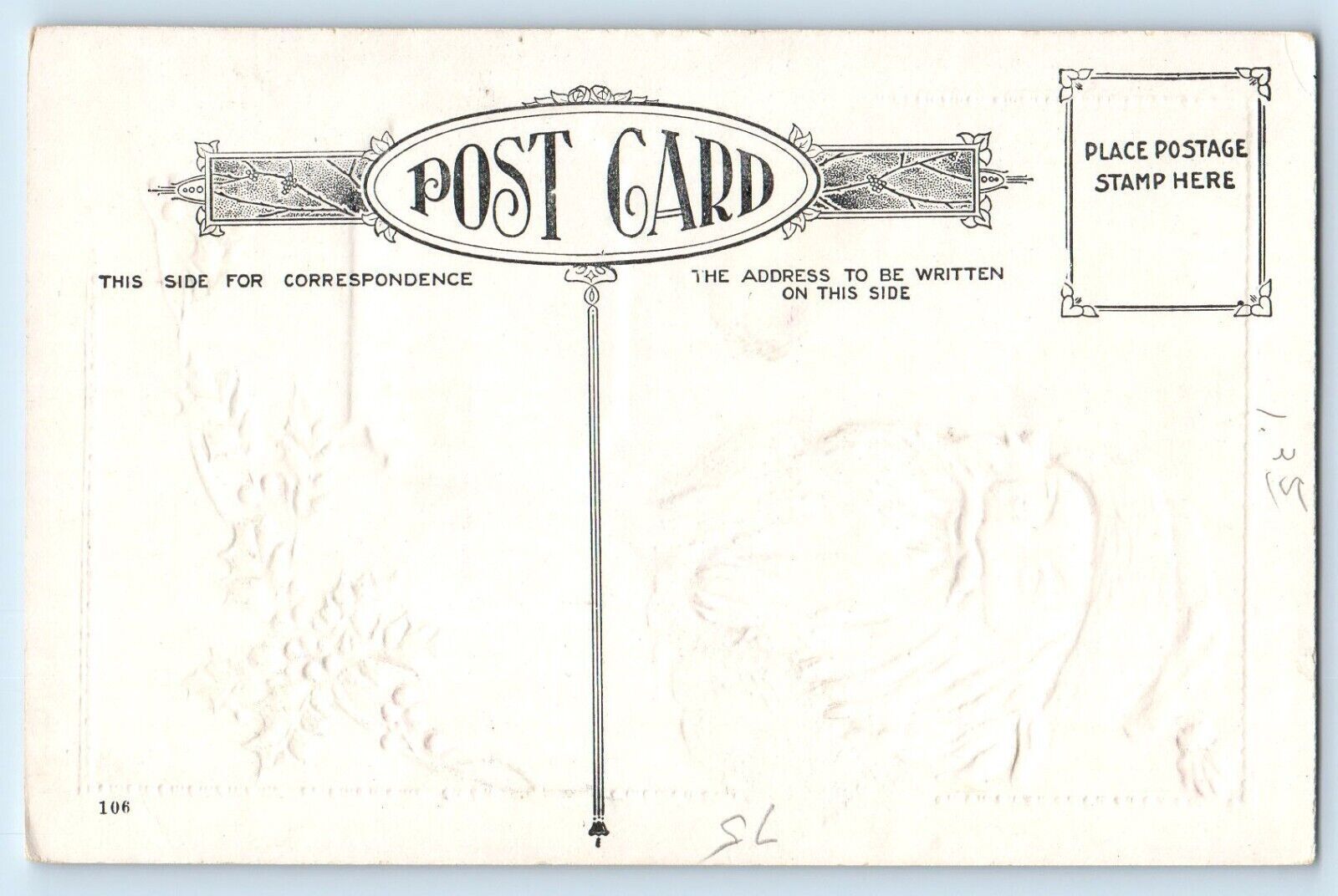 c1910's Christmas Santa Claus Holly Berries Winter Scene Embossed Postcard