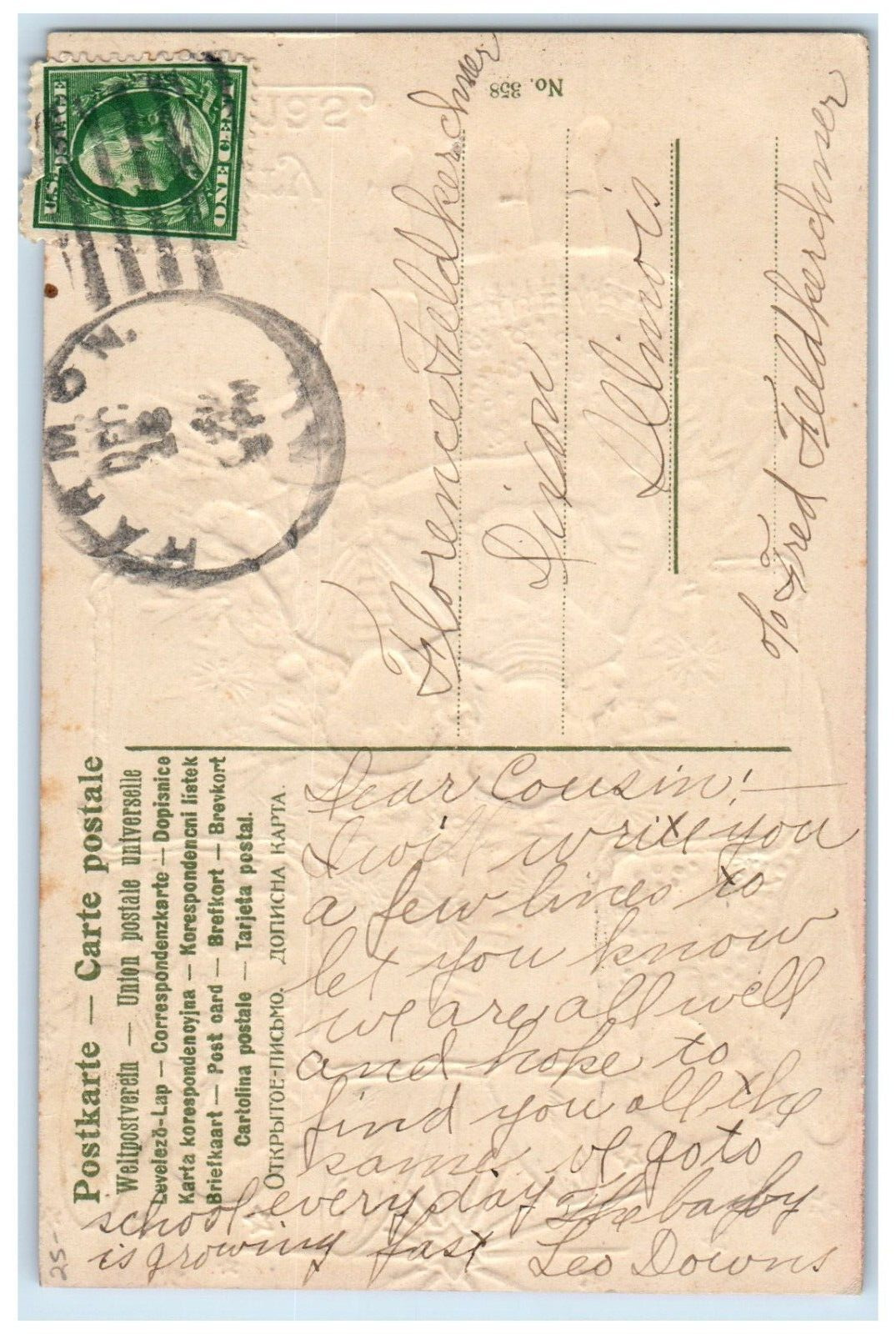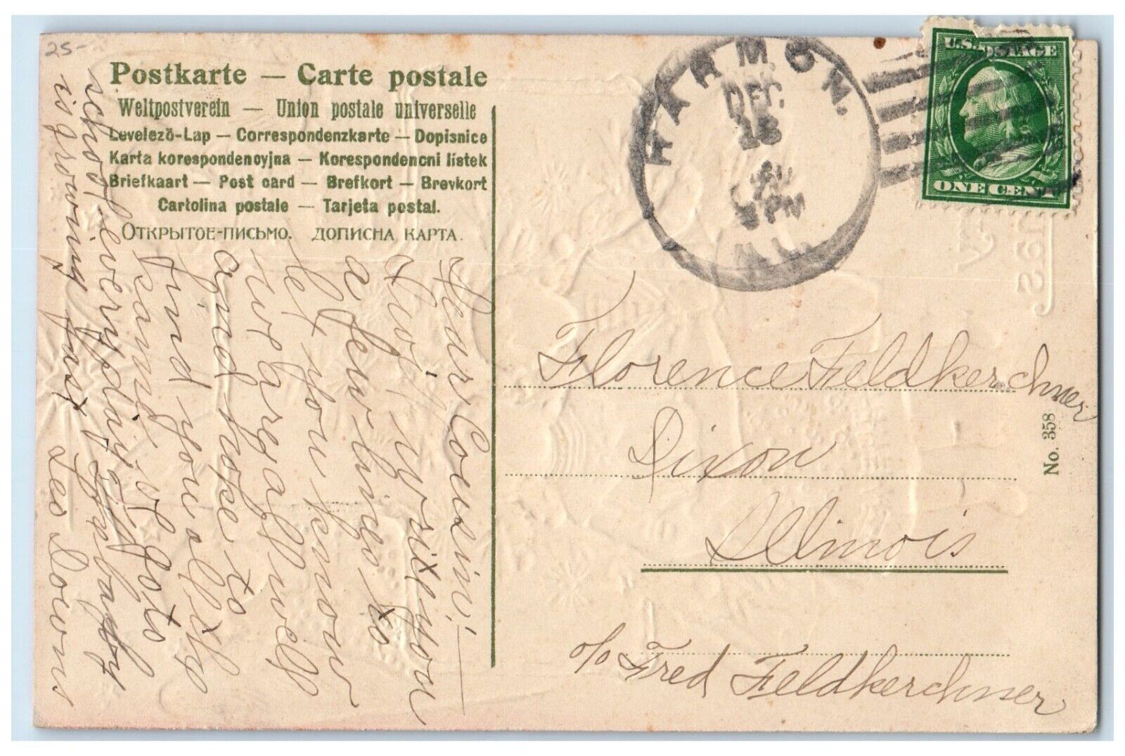 c1910's Christmas Tree Angels Boy Girl Carol Harmon Illinois IL Antique Postcard