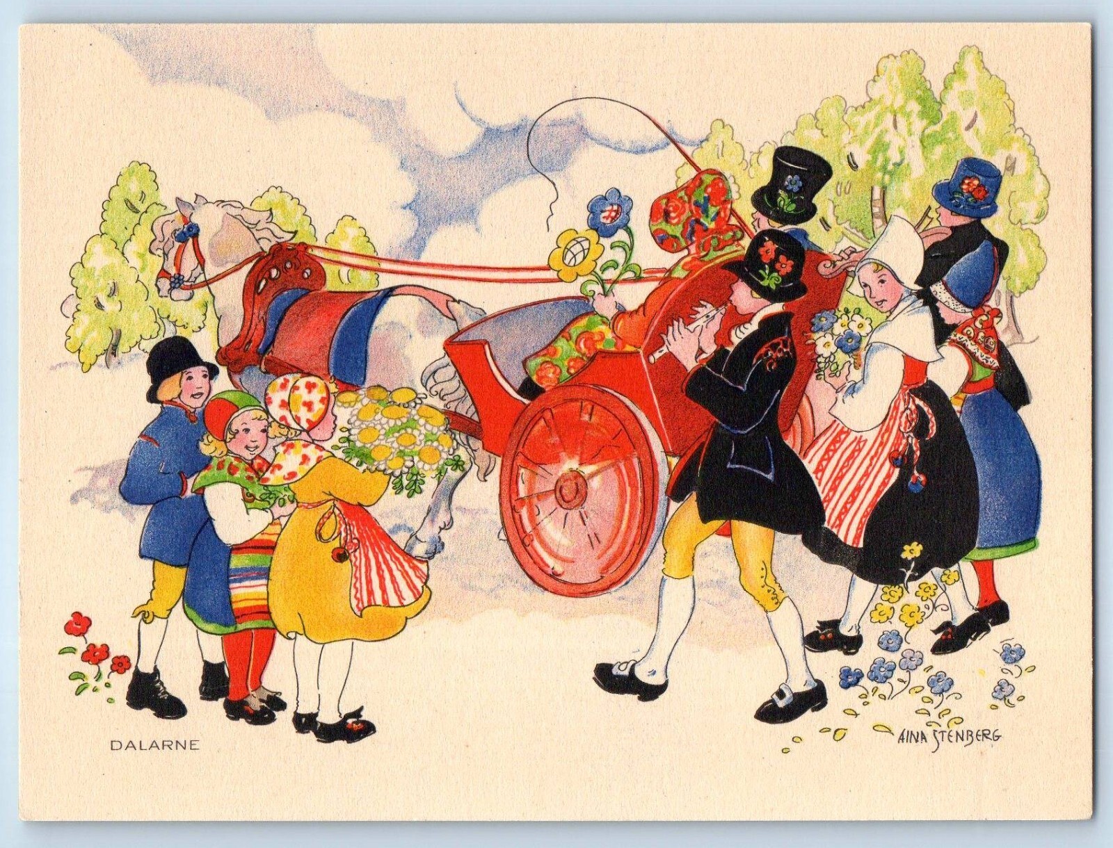 c1910's Dalarne Children With Flowers Aina Stenberg Signed Artist Postcard