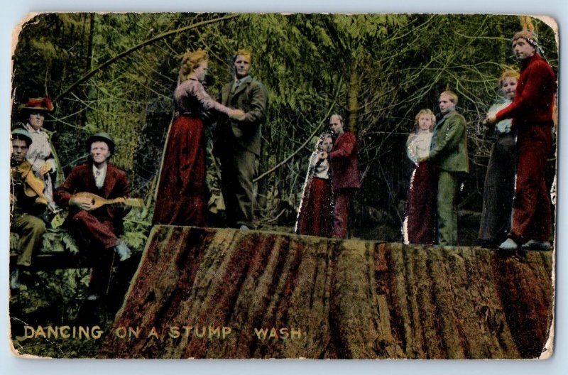 c1910's Dancing On A Stump Washington Embossed Unposted Antique Postcard