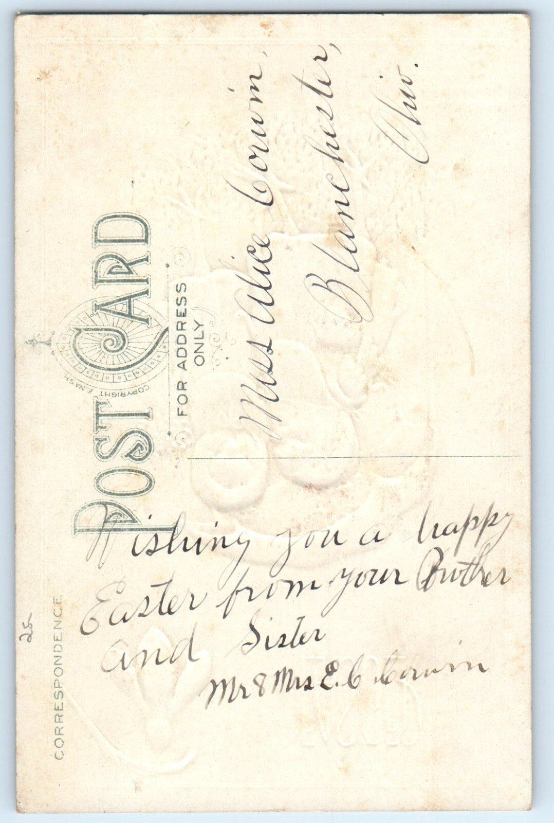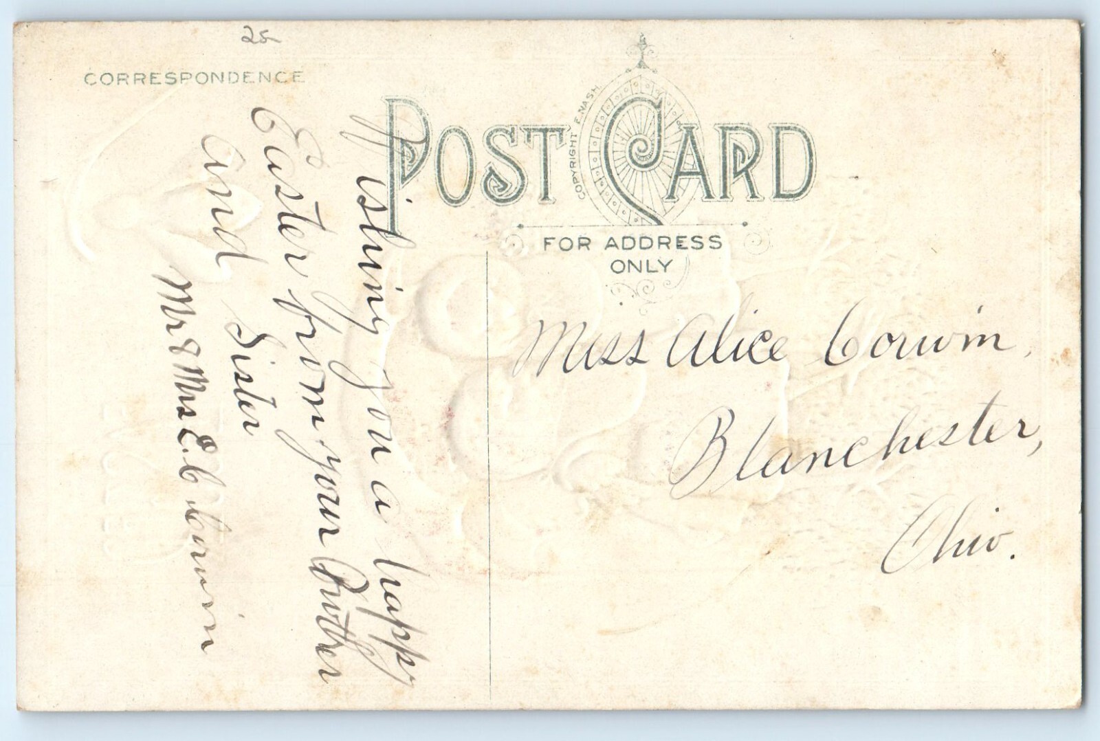 c1910's Easter Anthropomorphic Chicks With Flowers Umbrella Embossed Postcard