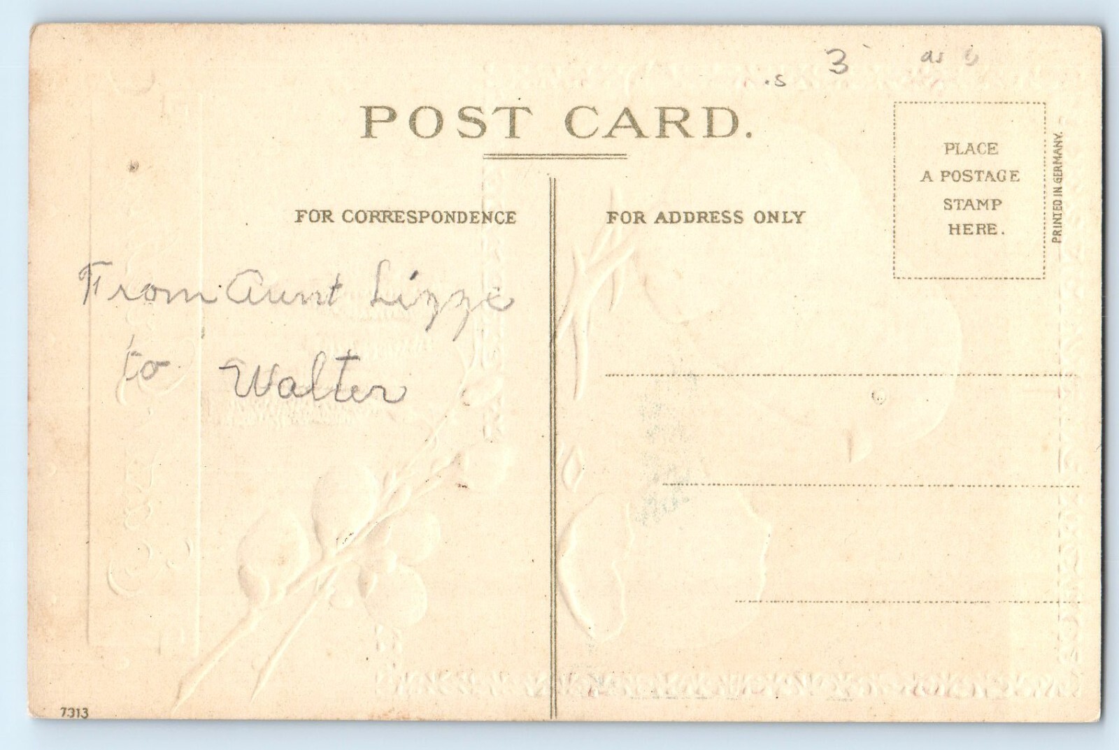 c1910's Easter Greetings Little Chick Hatched Egg Cattails Embossed Postcard