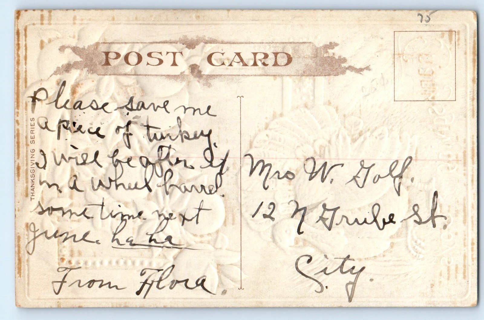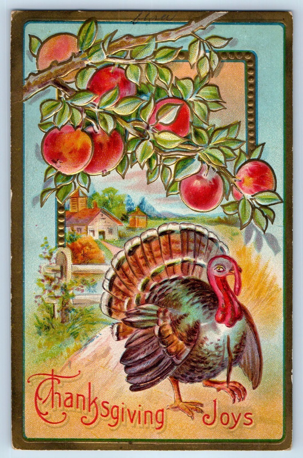 c1910's Thanksgiving Turkey Under The Peach Tree Embossed Antique Postcard