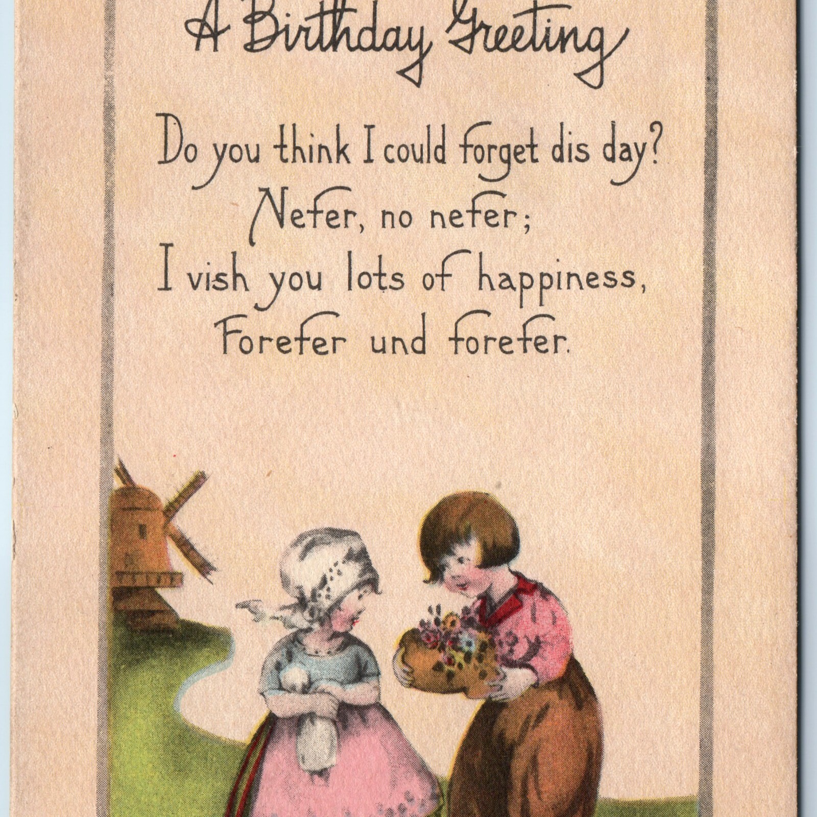 c1915 Birthday Greeting Postcard Dutch Children Windmill German Text A402