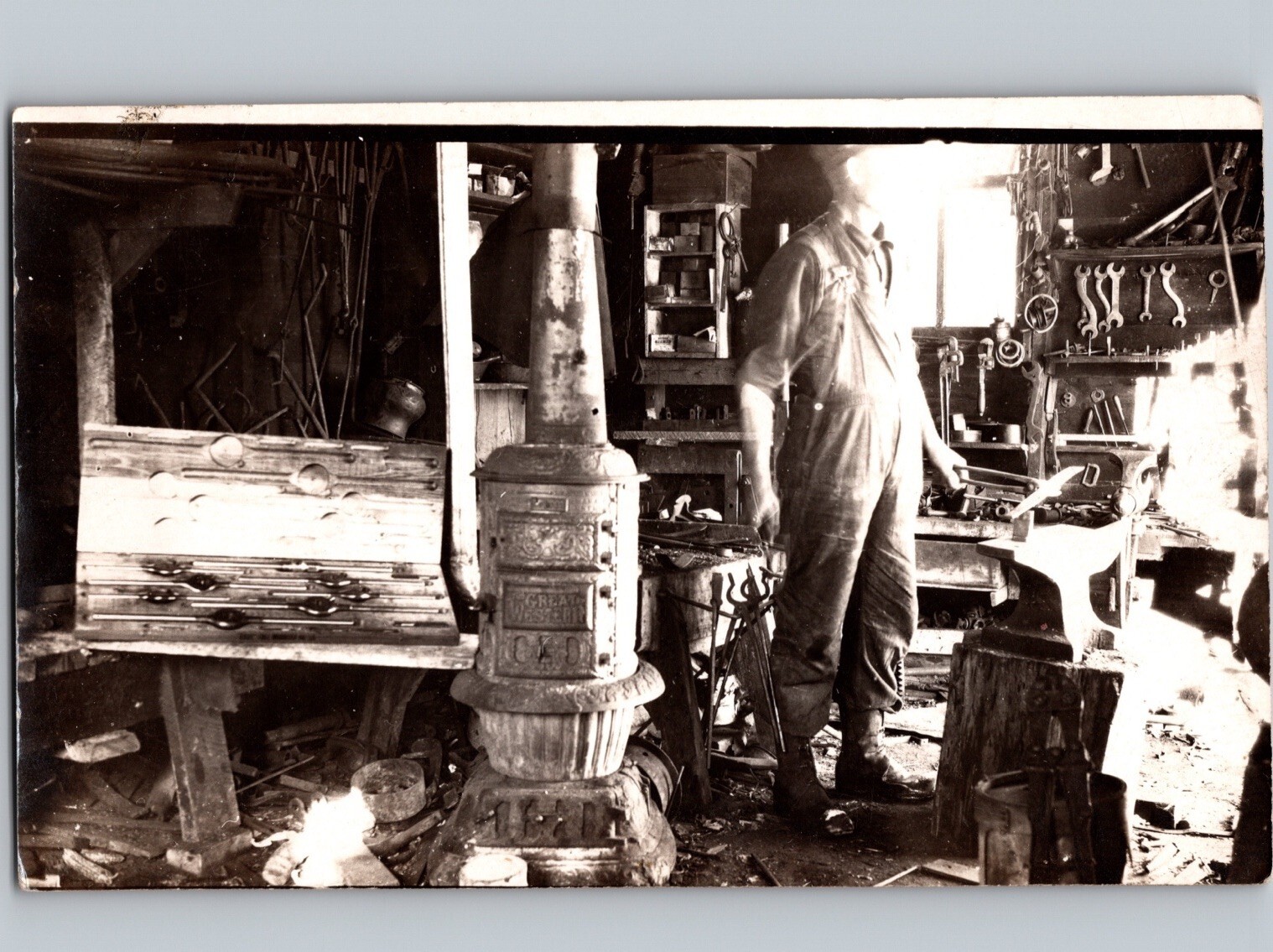 c1915 Interior View Blacksmith Shop Cremona Alberta Canada RPPC Real Photo