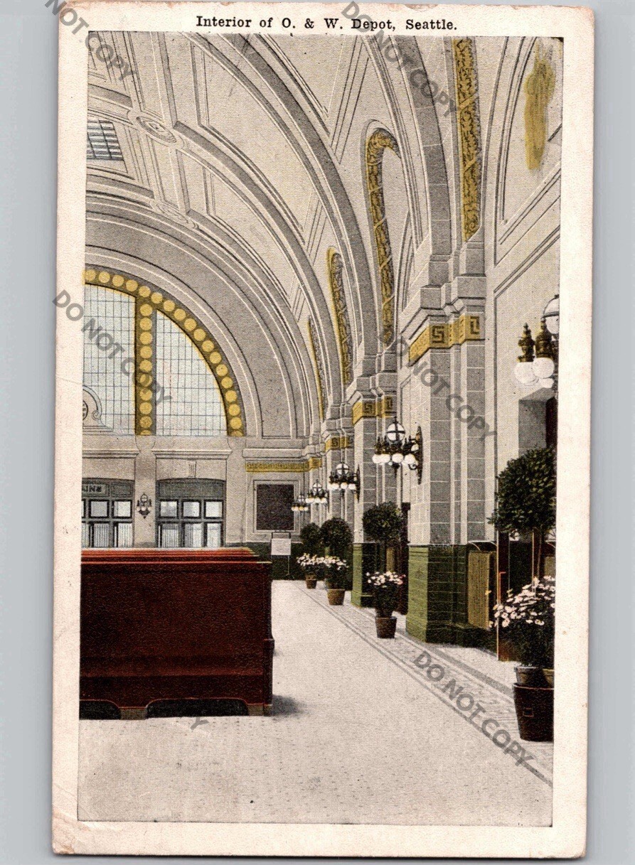 c1915 Interior View O&W Train Depot Railroad Station SEATTLE Washington WA. Condition is Used. Shipped with USPS Ground Advantage.