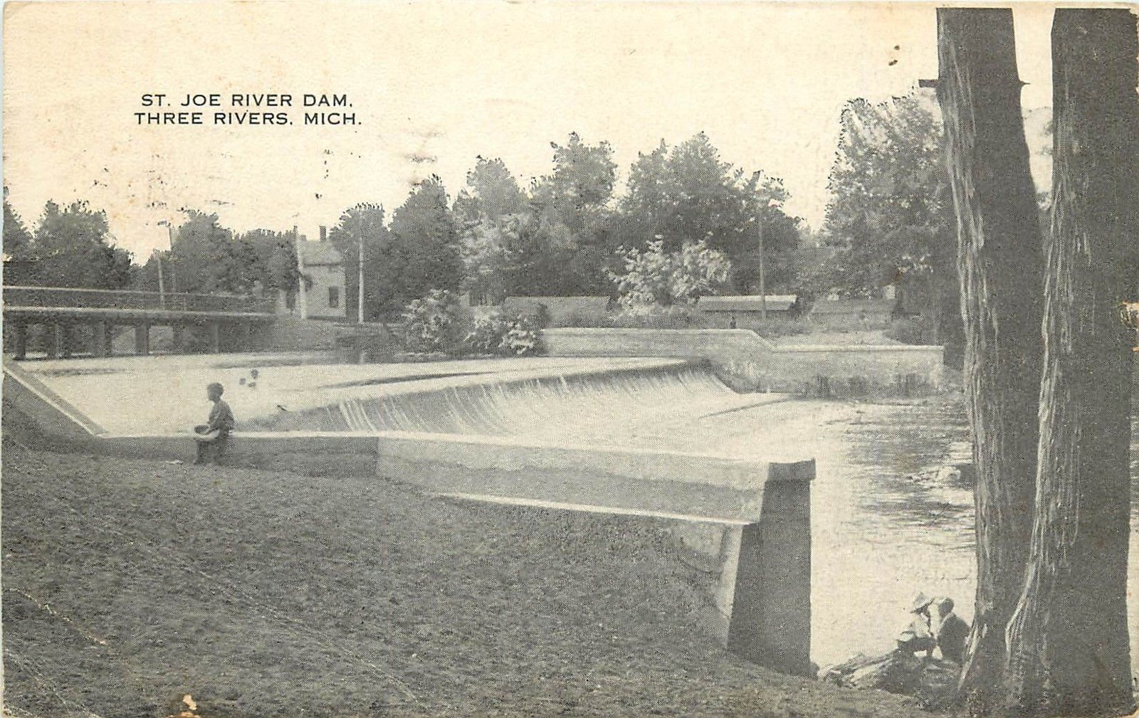 c1915 Postcard; St. Joe River Dam, Three Rivers MI, St. Joseph County Posted