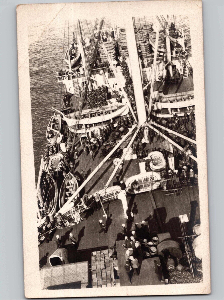 c1920 Aerial View Of World War 1 WW1 Ship Navy Sailors RPPC Real Photo Postcard