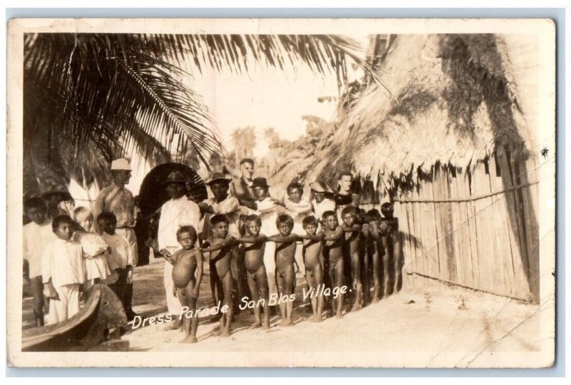 c1920's Boys Dress Parade San Blas Village Panama Canal RPPC Photo Postcard