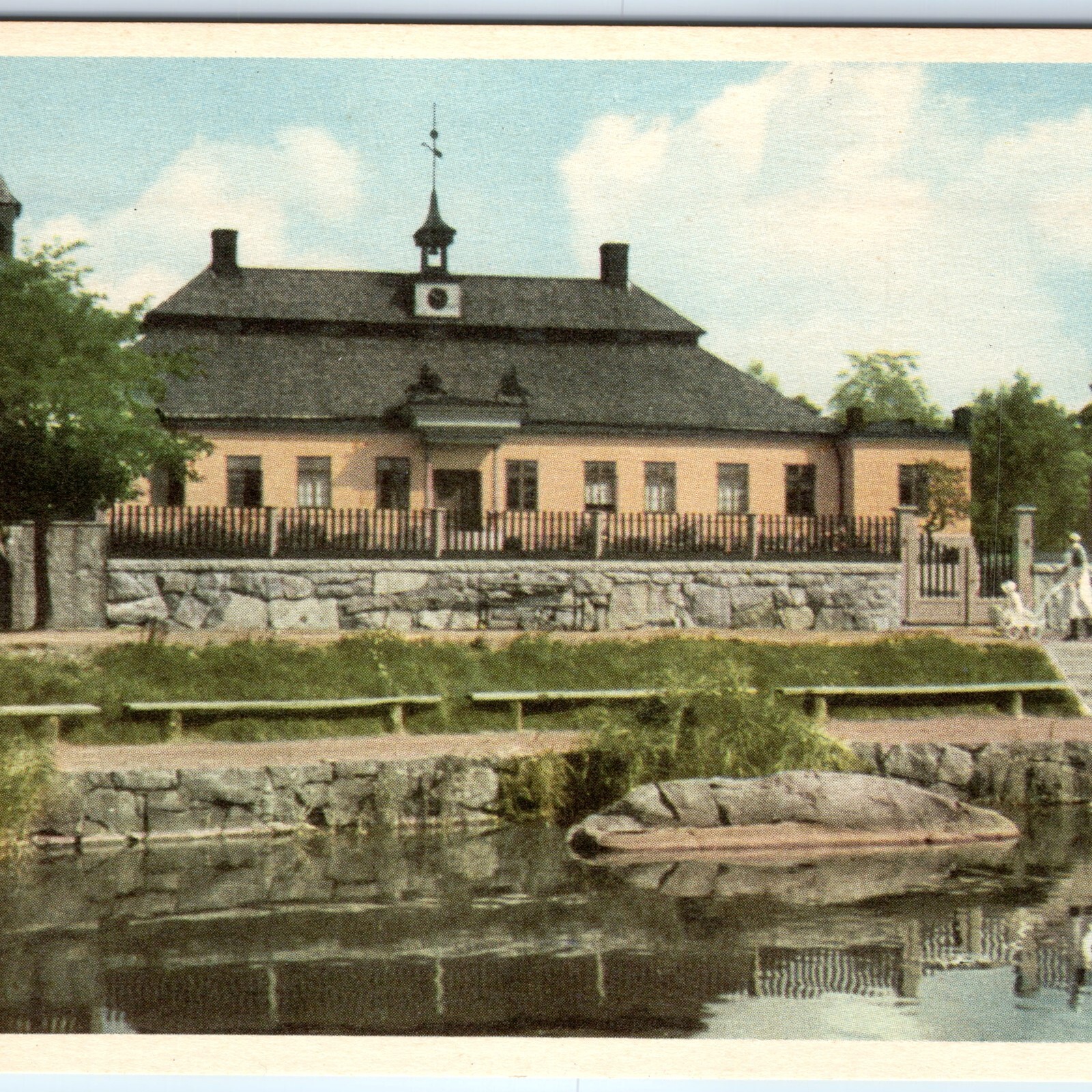 c1920s Stockholm, Sweden Skansen Manor House Museum Pond Reflection A352