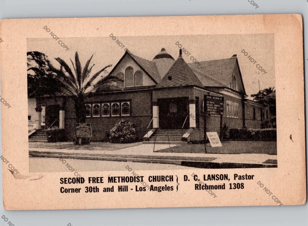 c1925 Second Free Methodist Church LOS ANGELES California CA Postcard