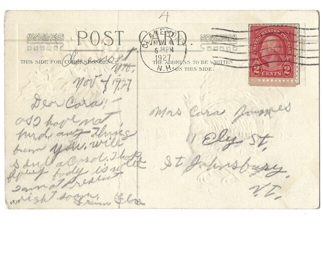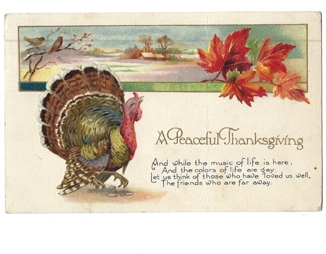 c1927 Peaceful Thanksgiving Poem Phrase Turkey Embossed Postcard