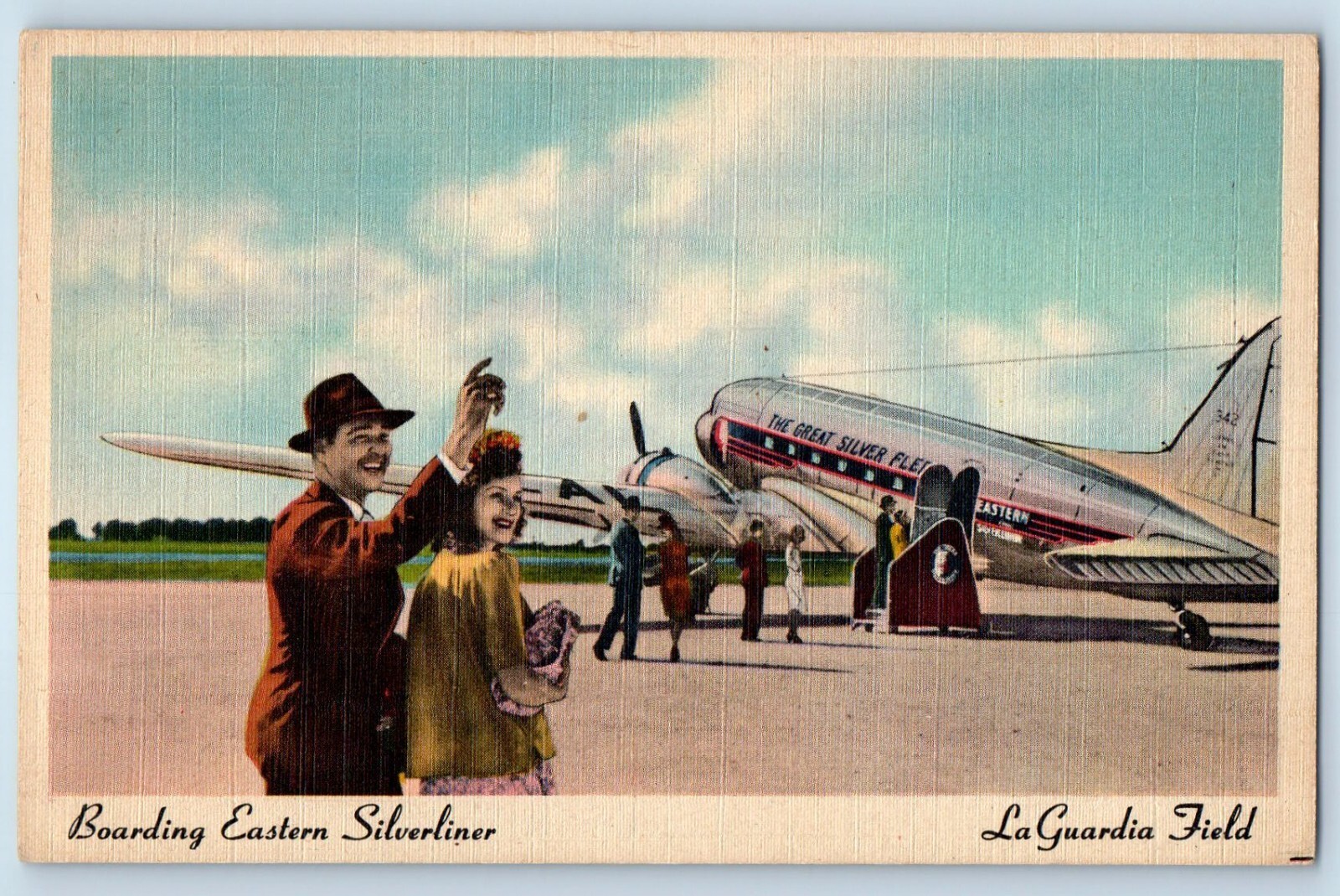 c1930's Boarding Eastern Silverliner La Guardia Field Airplane Vintage Postcard