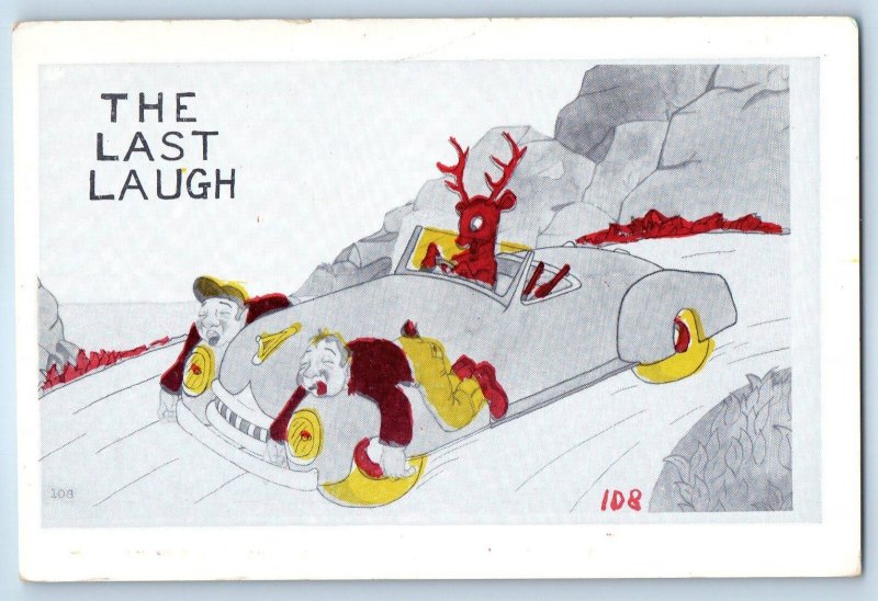 c1930's Comic Humor Drunk Men Anthropomorphic Deer Driving Car Vintage Postcard
