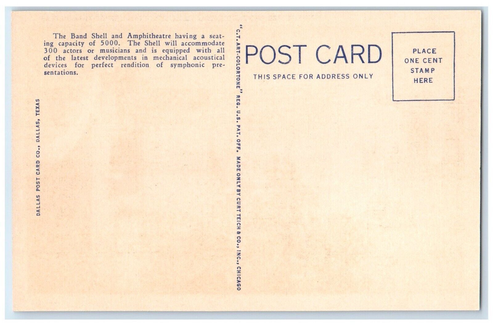 c1940 Amphitheatre Band Shell Texas Field Centennial Exposition Dallas Postcard