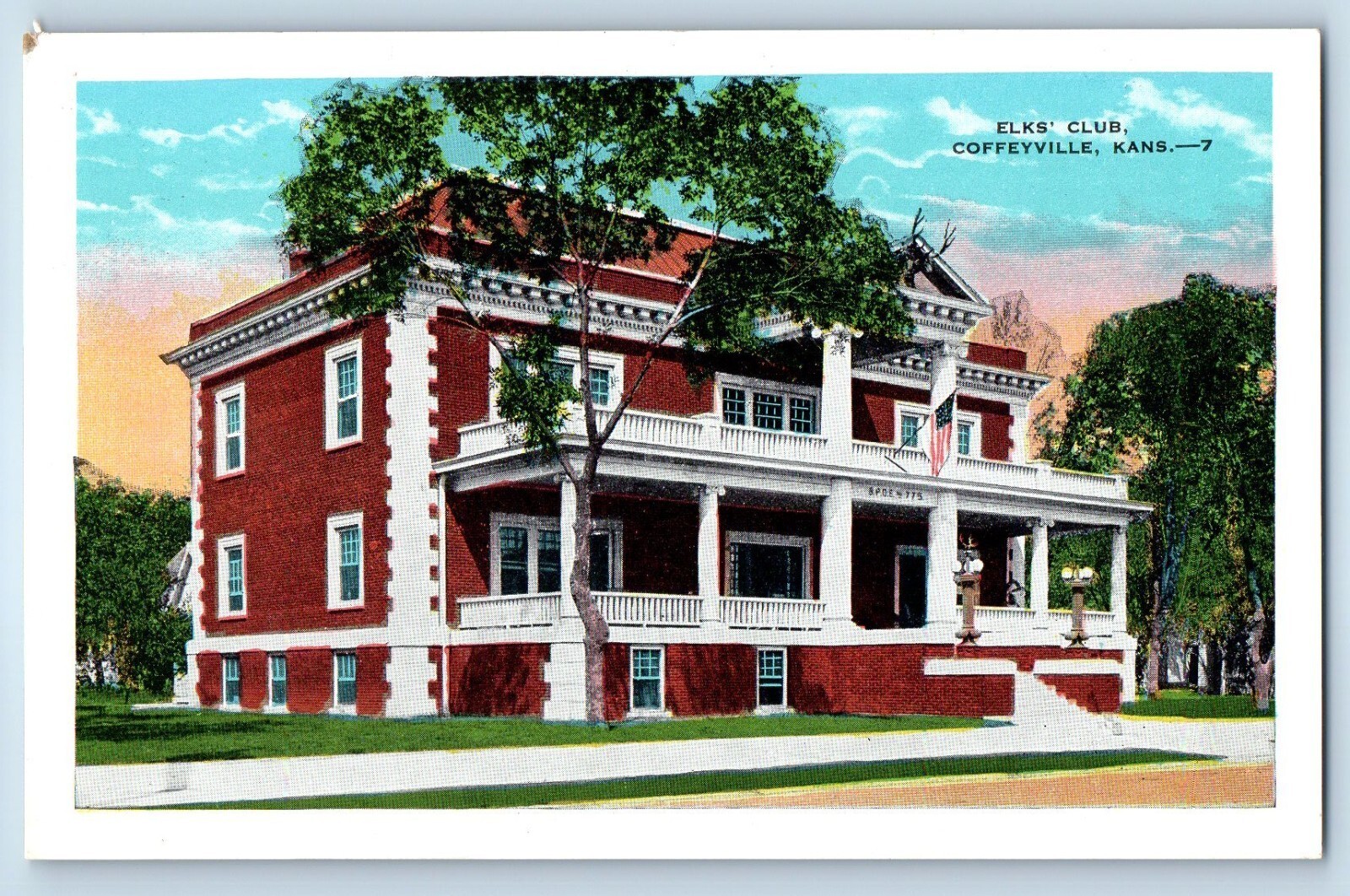 c1940 Coffeyville Kansas KS Vintage Postcard Elks Club Front Building Entrance