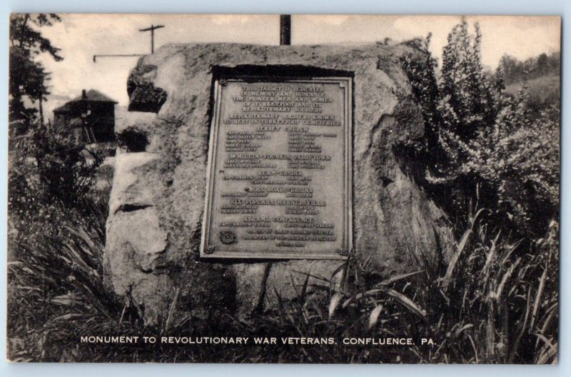 c1940 Confluence Pennsylvania PA Postcard Monument Revolutionary War Veterans