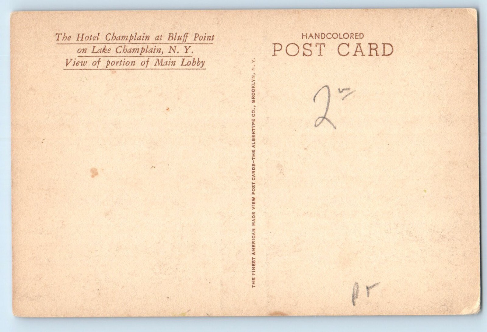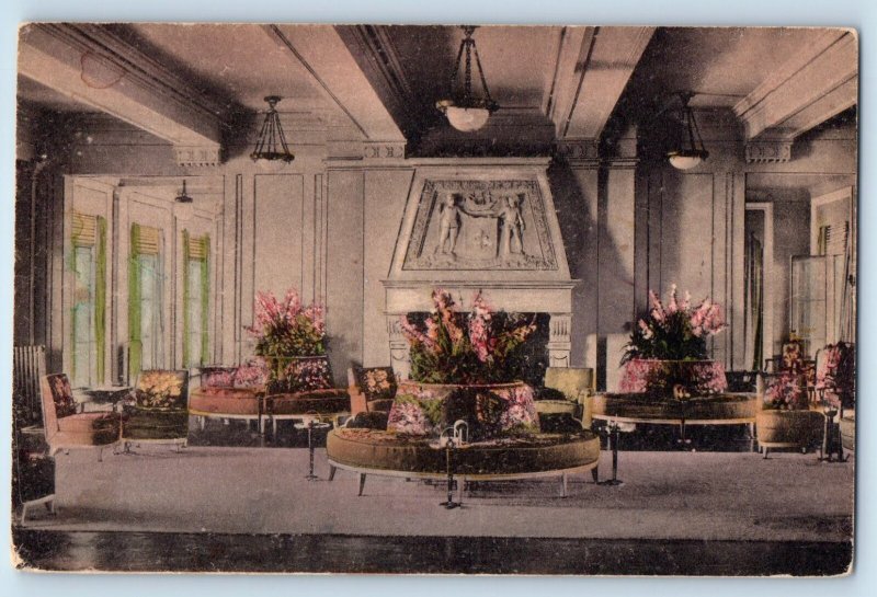 c1940 Lake Champlain New York Postcard Hotel Bluff Point View Portion Main Lobby