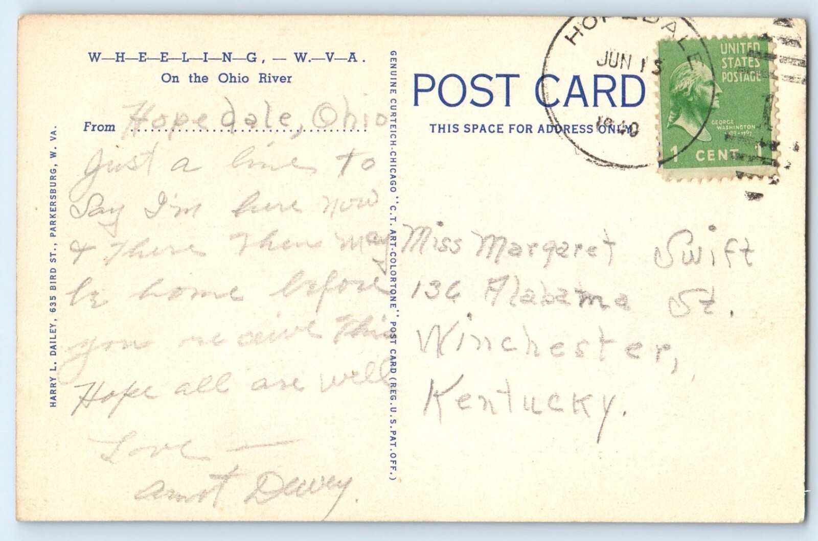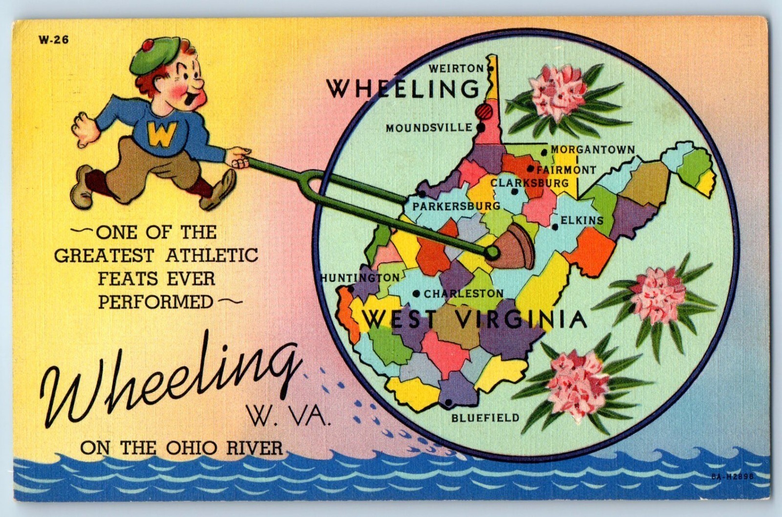 c1940 Wheeling West Virginia WV Postcard Ohio River Athletic Feats Performed Map