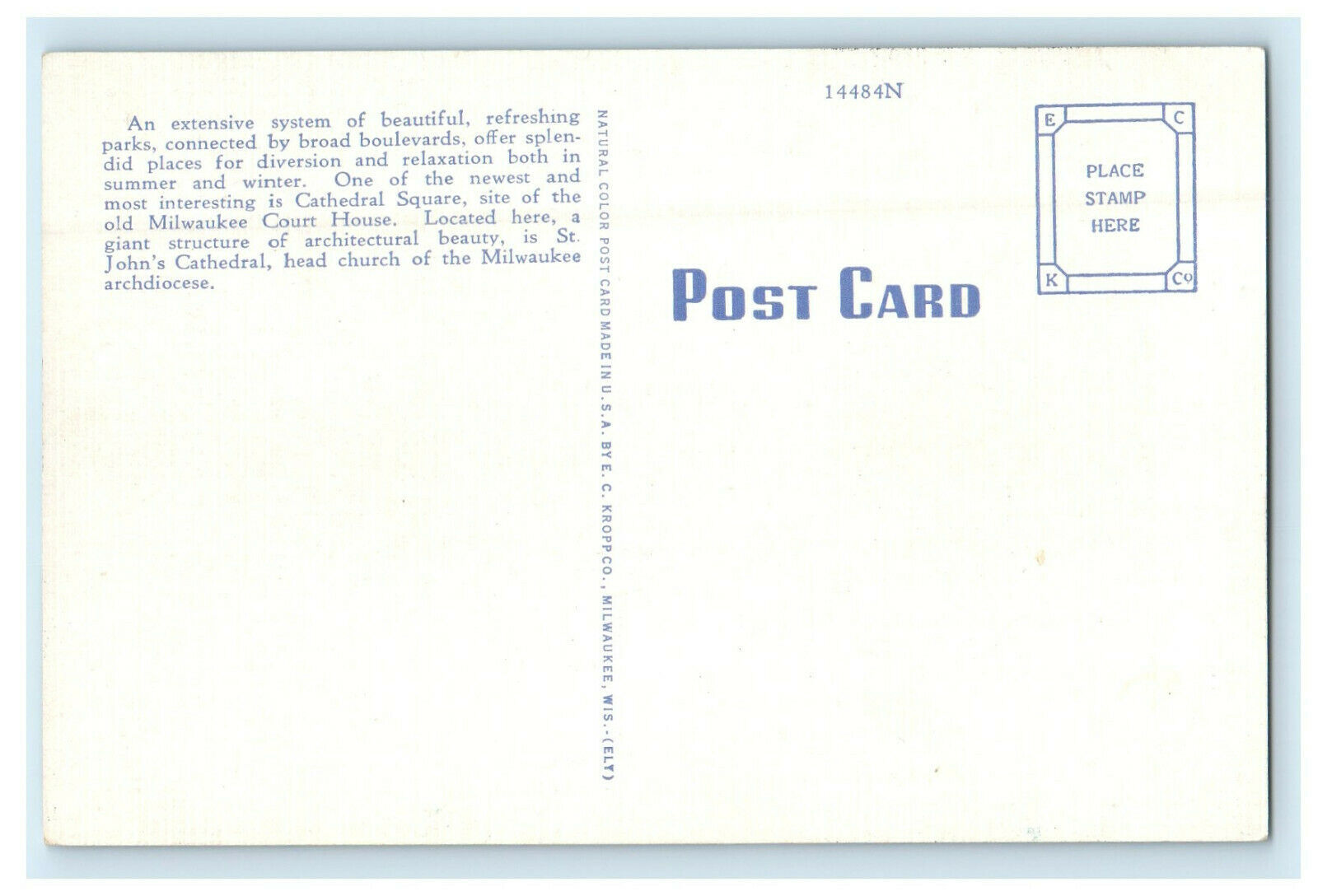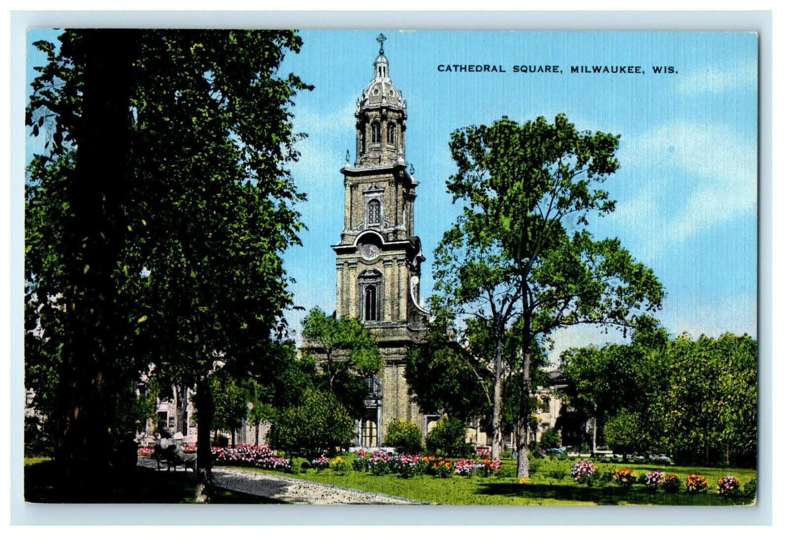 c1940s Cathedral Square, Milwaukee Wisconsin WI Unposted Postcard