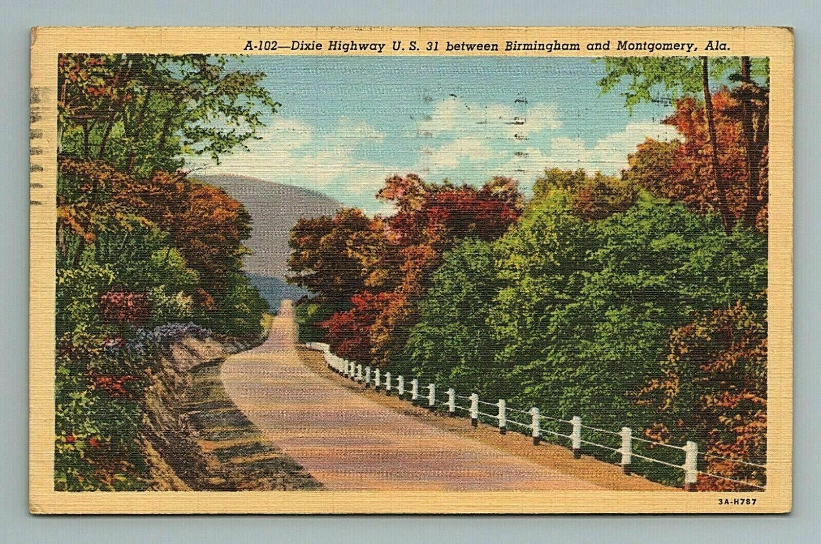 c.1940s Dixie Highway US 31, Birmingham, Montgomery, Alabama AL Postcard