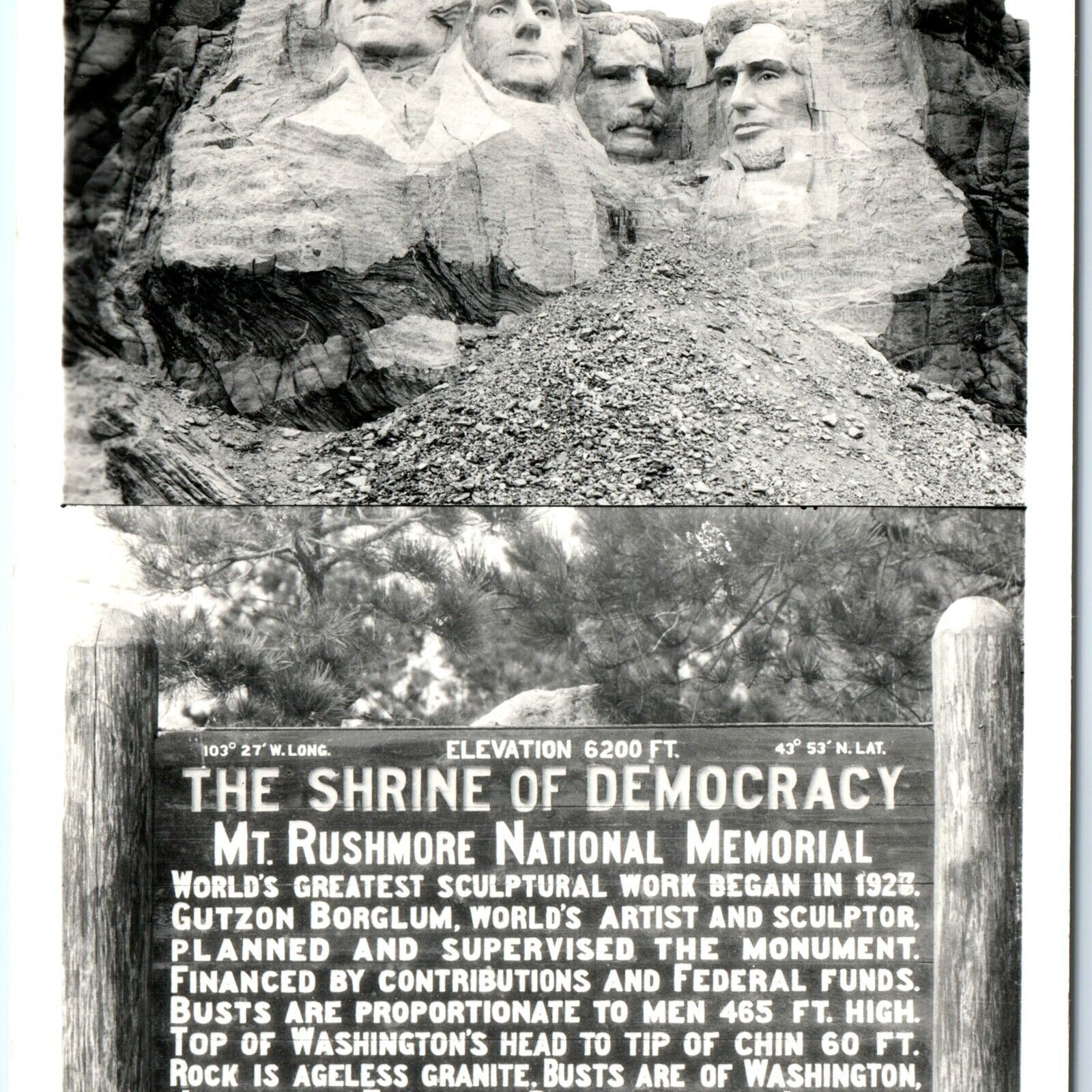 c1940s Mount Rushmore, So. Dak. RPPC Info Display Plaque Real Photo Postcard A87
